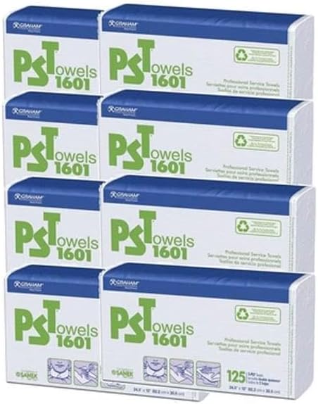 Graham Beauty 12" x 24" Professional Service Towels - Case of 1000 (8 Packs of 125) - White, Unscented, Rectangular, Cleaning Towels