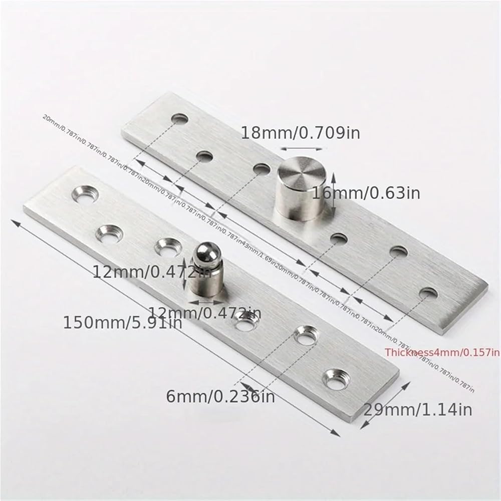 Stainless Steel 360° Rotating Hinges, Concealed Adjustable Pivot 4Pcs(150x29x4mm)
