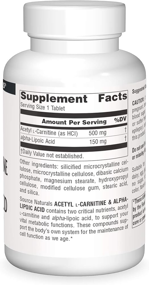 Source Naturals Acetyl L-Carnitine & Alpha-Lipoic Acid contains two critical nutrients, acetyl L-carnitine and alpha-lipoic acid, to support your vital metabolic functions.
