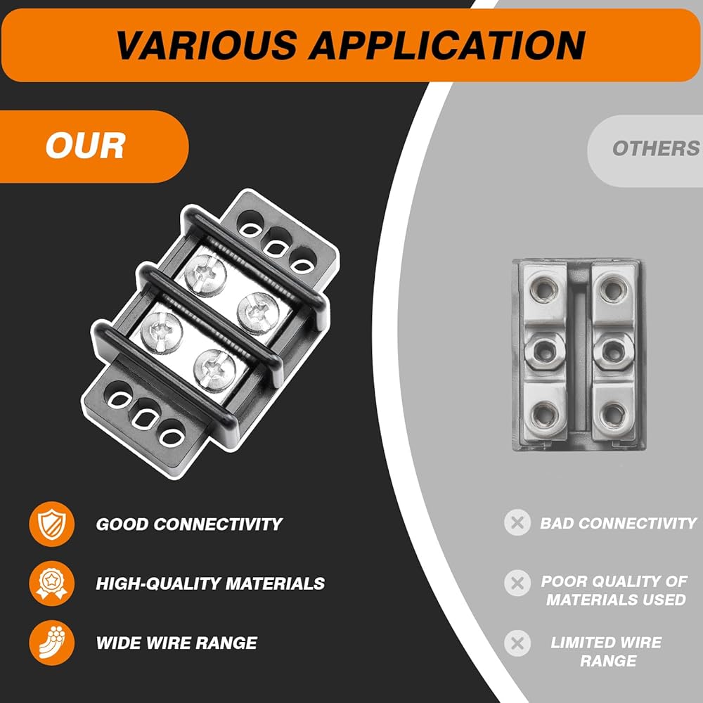 [Optimized for 10-22 AWG Copper Wires]: With a 14.28mm pitch and M4 torque, these blocks are compatible with copper wires from 10-22 AWG, allowing secure and stable connections for various wiring needs, from small household projects to commercial setups.