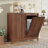 Elegant Fluted Design: Tilt out trash cabinet features a unique waveform fluted panel, brings visual interest while reflecting texture and elegance. Pair it with black metal handles for a premium look. The minimalist and distinctive bin cabinet is a great decoration for any room in your home