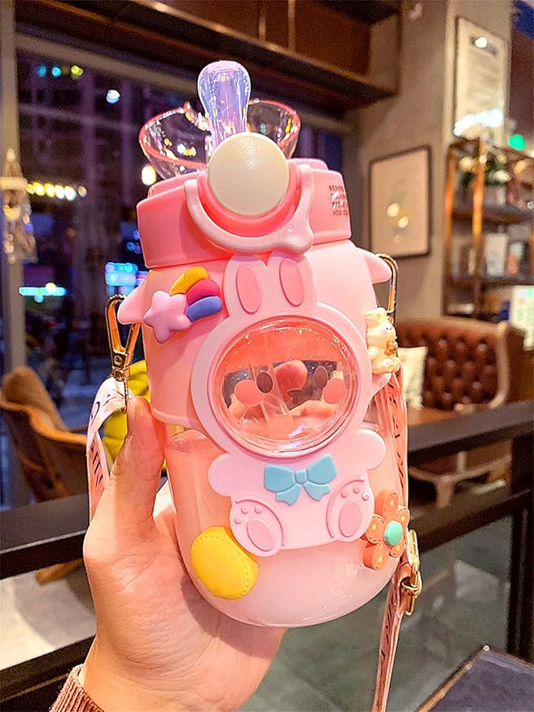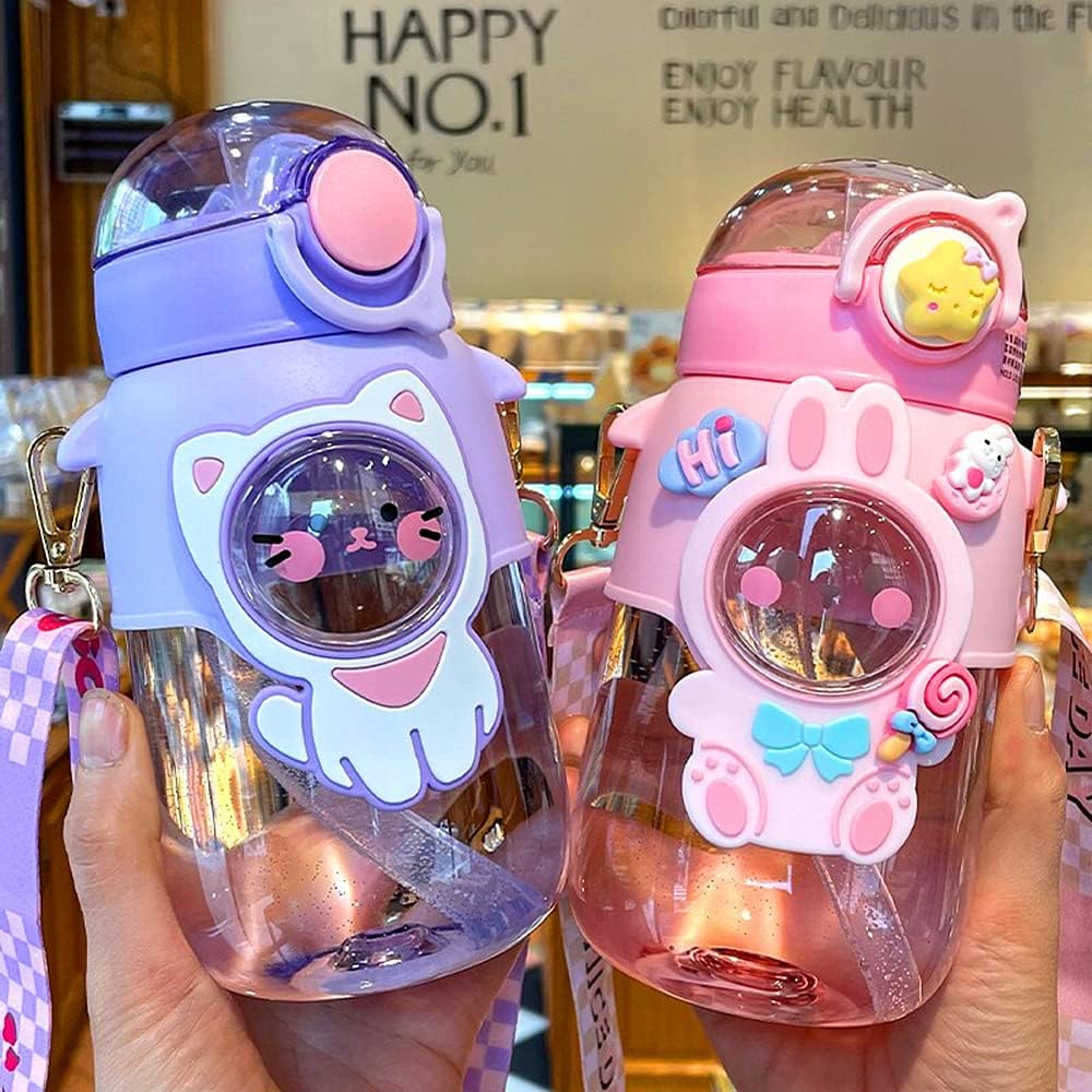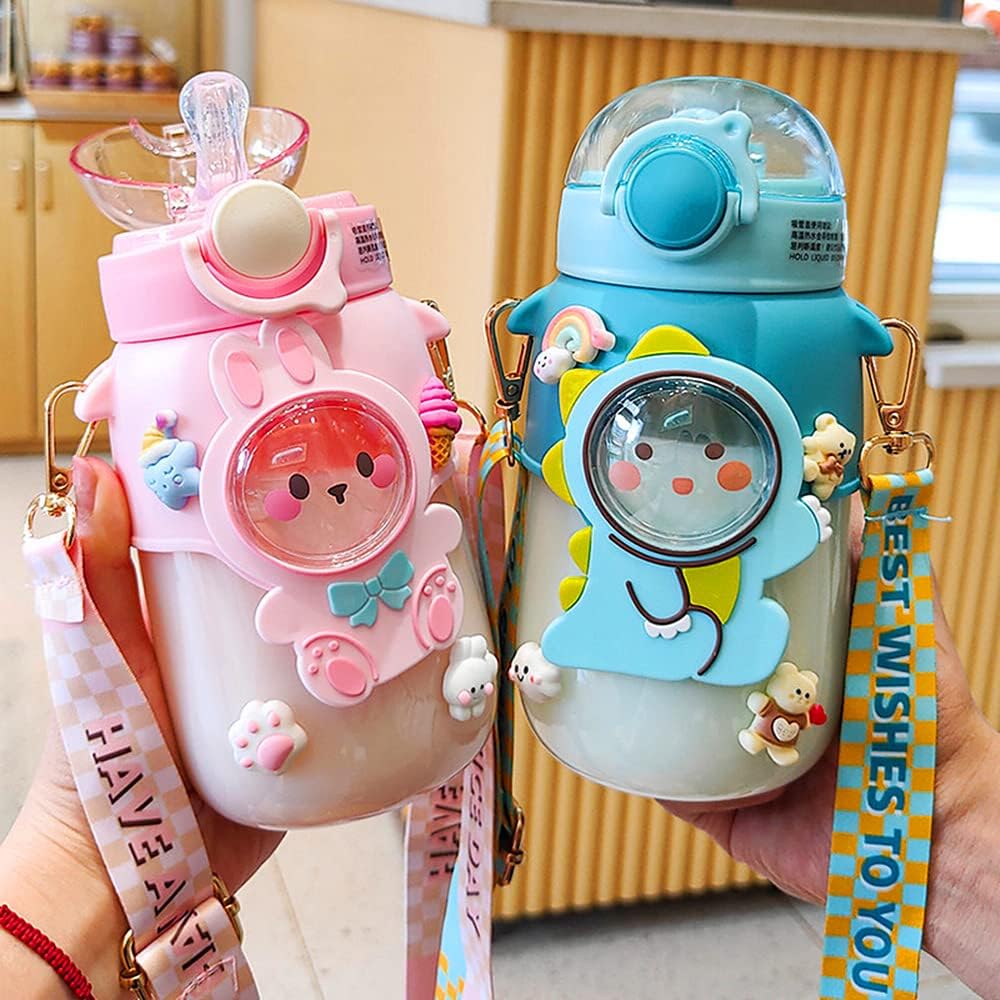 ❤【Leakproof Design】- The kawaii water bottle mouth with straw adopts a seal design to keep the straw clean. The bottle can be cross-carried on your back, and also can be put into bags to enjoy traveling and outdoor sports.