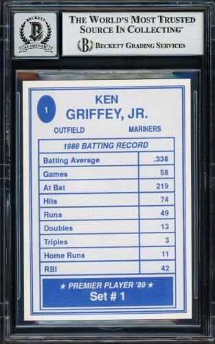 Ken Griffey Jr. Autographed 1989 Premier Player Rookie Card #1 Seattle Mariners Auto Grade Gem Mint 10 Beckett BAS #17037588 - Baseball Slabbed Autographed Rookie Cards