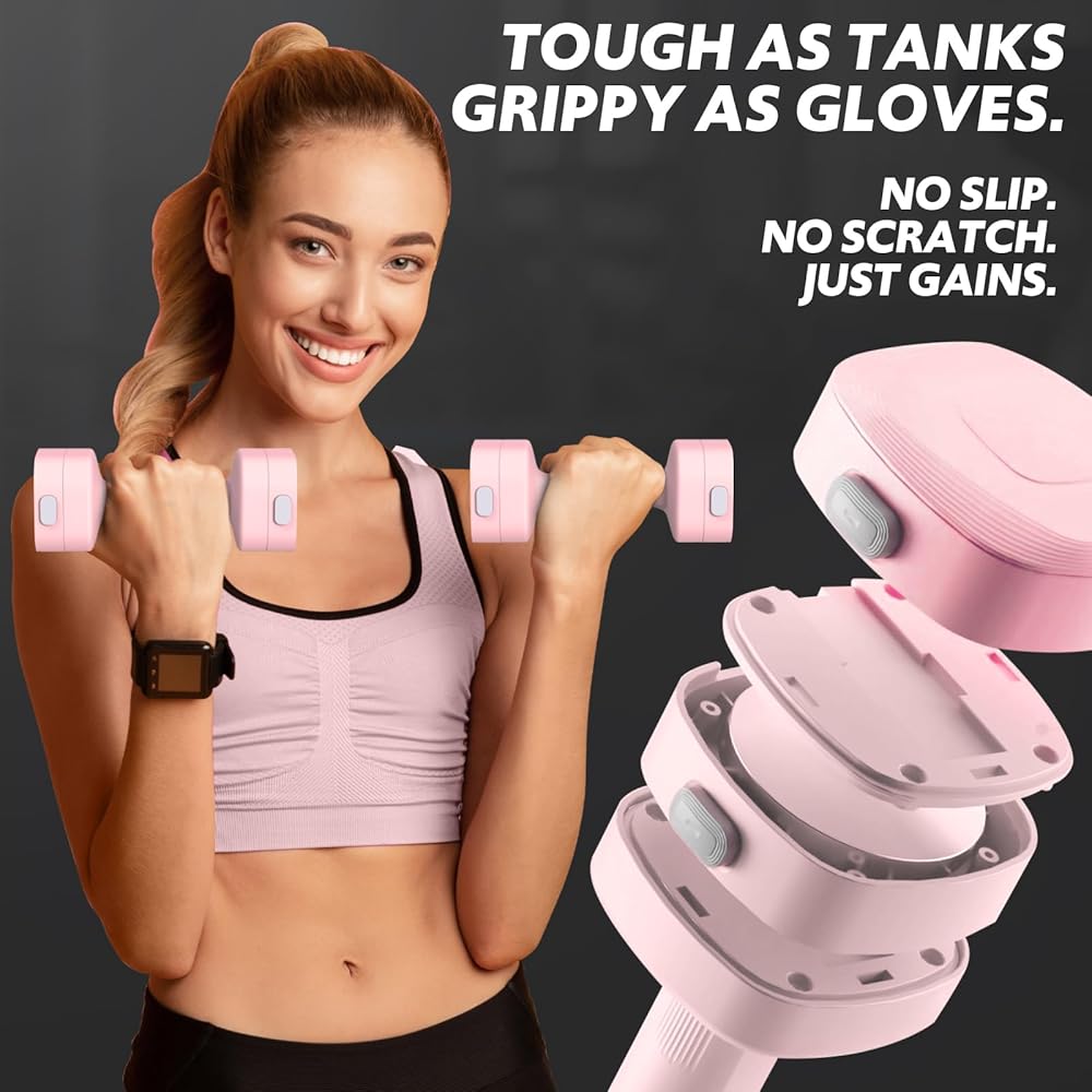 ✔ 4-in-1 Adjustable Weights – Each dumbbell adjusts between 2.2lb, 3.3lb, 4.4lb, and 5.5lb (11lb total combined). The kettlebell converter weighs 1.1lb, with a total adjustable range from 5.5lb to 12.1lb for versatile training.