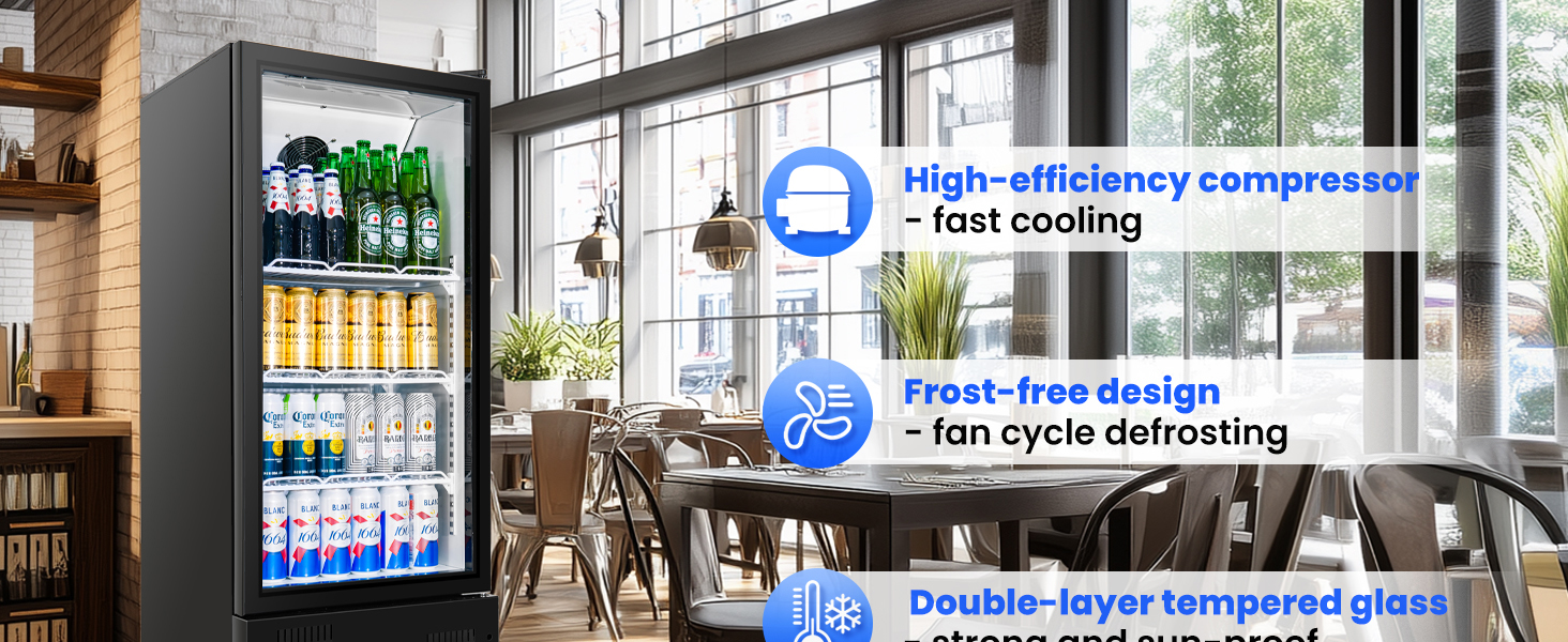 Fast refrigeration & frost-free design: This commercial beverage refrigerator features a powerful compressor and advanced airflow system for fast, frost-free cooling.Use knobs to adjust the temperature in multiple levels to maintain the ideal drink state