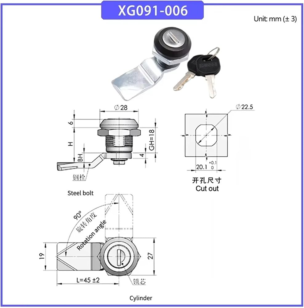 Cam Lock Industrial Machinery Equipment Machine and Cabinet Doors Round Head Cylinder 1Pcs(XG091-006-Black)