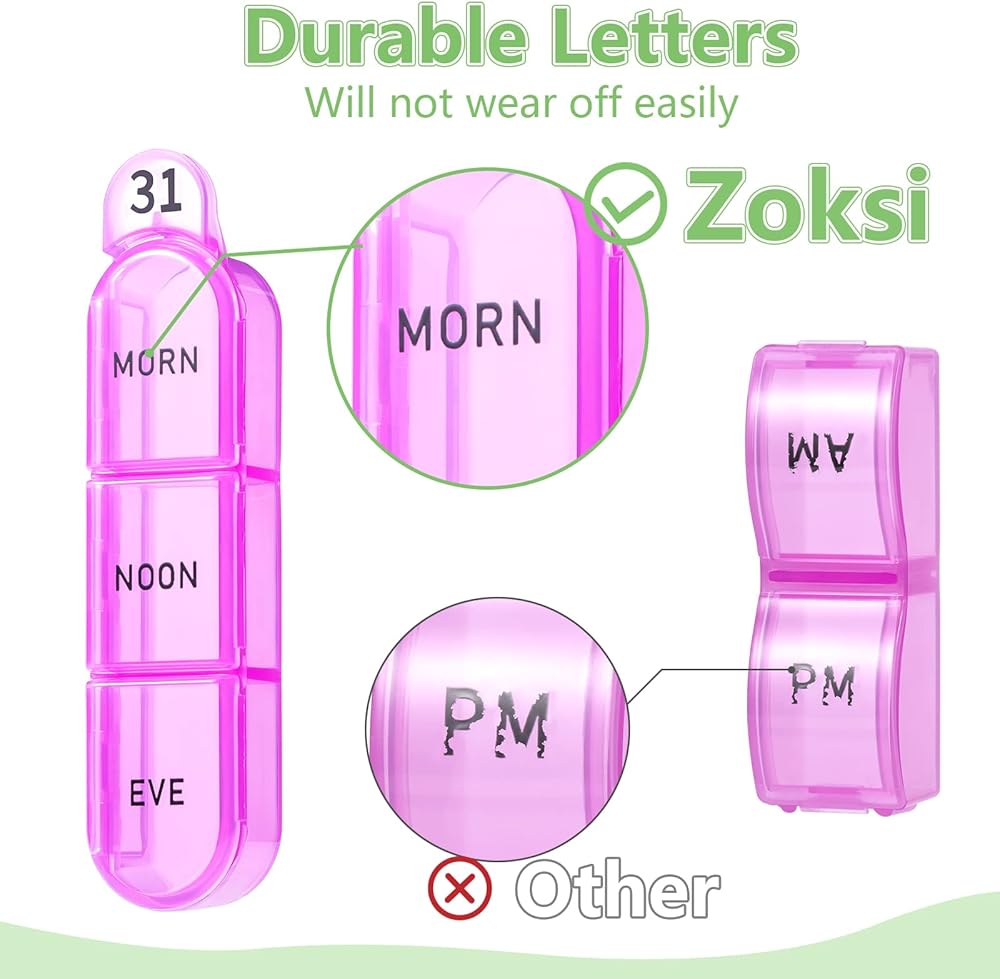 Zoksi Monthly Pill Organizer 3 Times a Day, One Month Pill Box Organizer Morn-Noon-Eve, 30 Day Pill Case for Travel, 31 Day Medicine Organizer with 32 Removable Compartments for All Meds