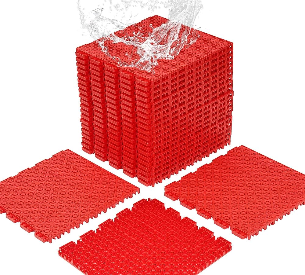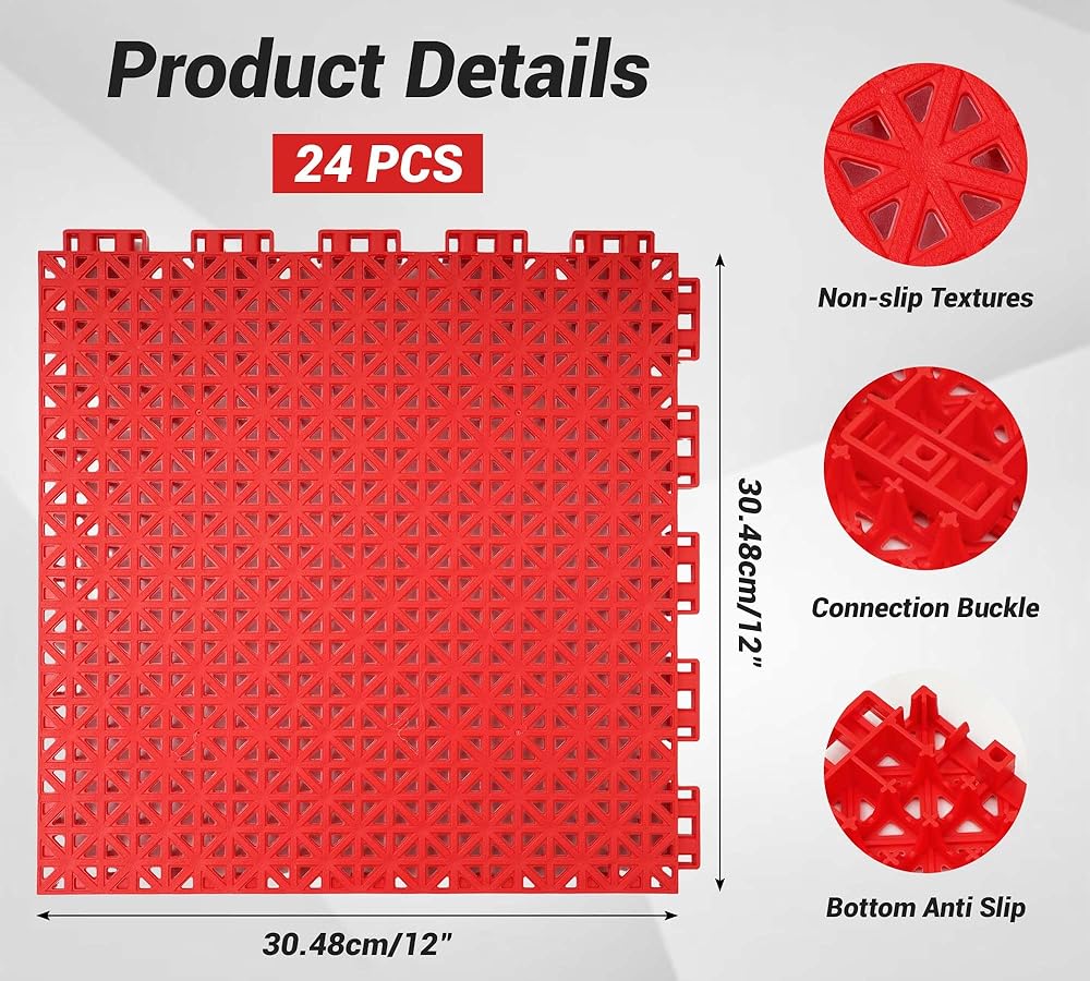 jxgzyy 24 PCS Basketball Court Tiles, 5/8 Inch Thick Interlocking Sport Court Tiles, Non Slip PP Portable Drainage Mat for Tennis Court Drain Deck Pool Patio Garage