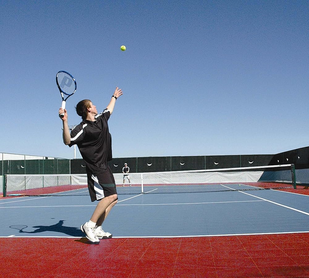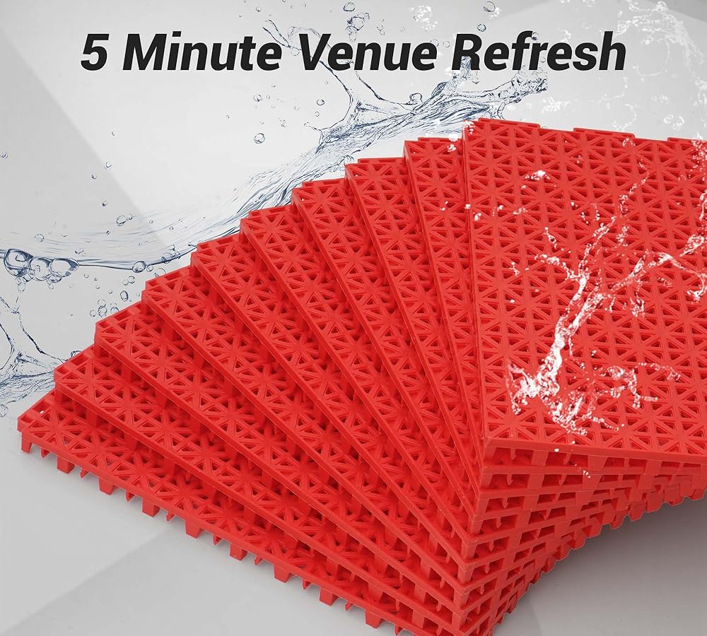 ALL-WEATHER PERFORMANCE: Rain or shine, our interlocking deck tiles never fade from UV rays and instantly drain water and maintain a grippy surface. Perfect for outdoor courts, they resist fading and ensure consistent ball bounce without slippage