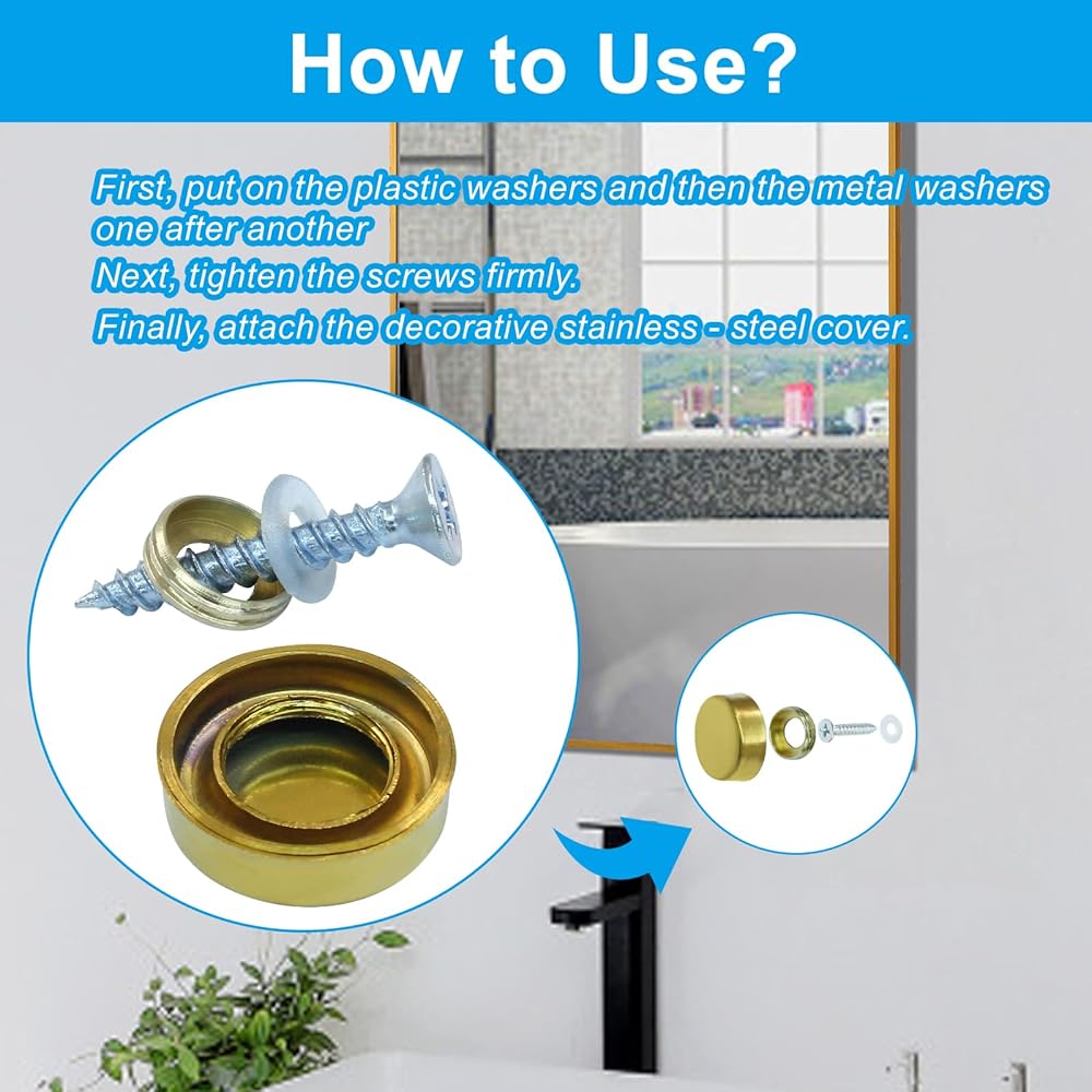 Versatile Use: Perfect for a variety of applications—mirror decoration, glass signage, bathroom panels, and more—our fasteners ensure practicality in every project.