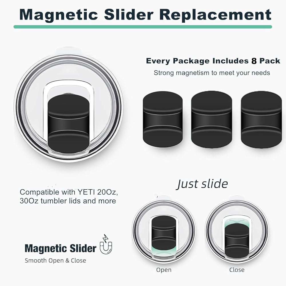 【Universal Compatibility Fit for Yeti Models】Our magnet fit for yeti magnetic slider replacement is perfectly compatible with Yeti lid magnetic slider models, fitting 10oz, 14oz, 16oz, 20oz, 26oz, and 30oz sizes. This 8-pack ensures you always have a magnet fit for yeti magslider and magnet fit for yeti lid magnetic slider ready to replace worn or lost parts, maintaining the leakproof integrity of your favorite tumblers.