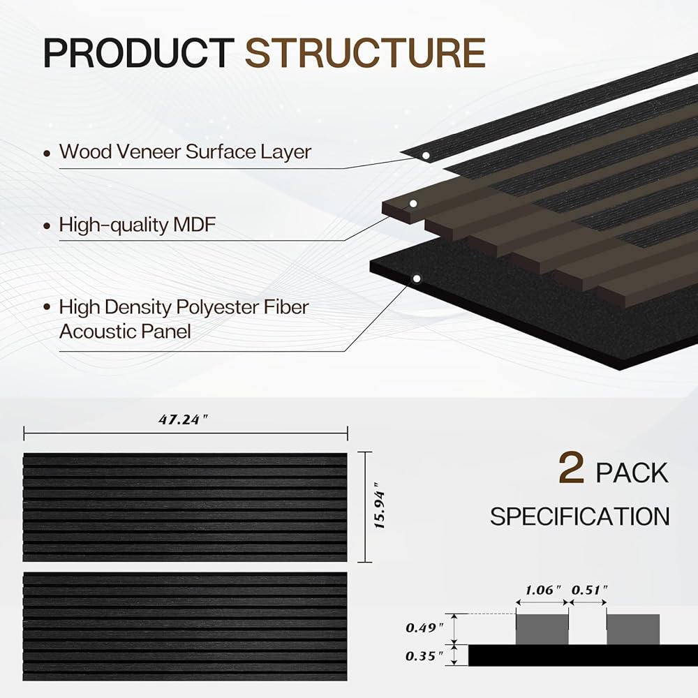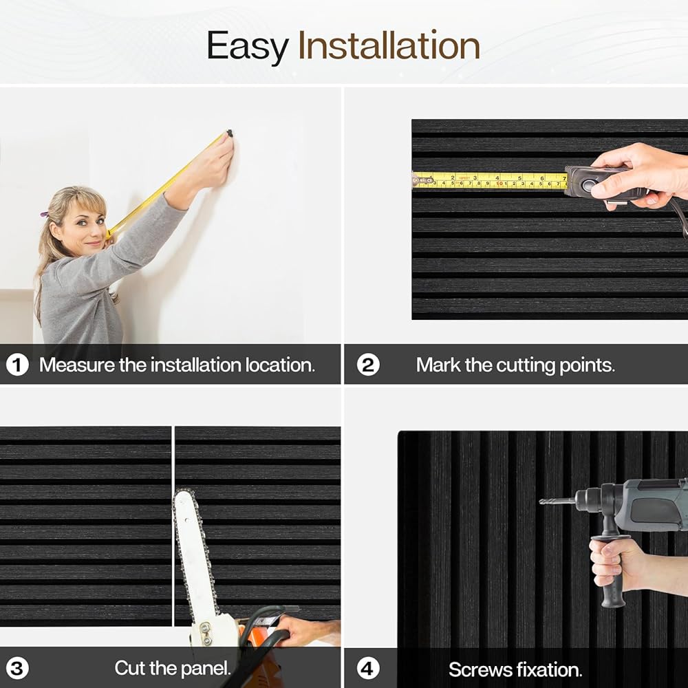 【Easy and Versatile Installation】Installation of our acoustic wall panels is quick and simple. You can screw them directly into the wall through the felt acoustic backing or glue them onto the wall. The wood panel can be cut freely to fit your needs and installed horizontally or vertically. It allows you to combine the slat panels at will to create a seamless connection, making them perfect for any interior decor