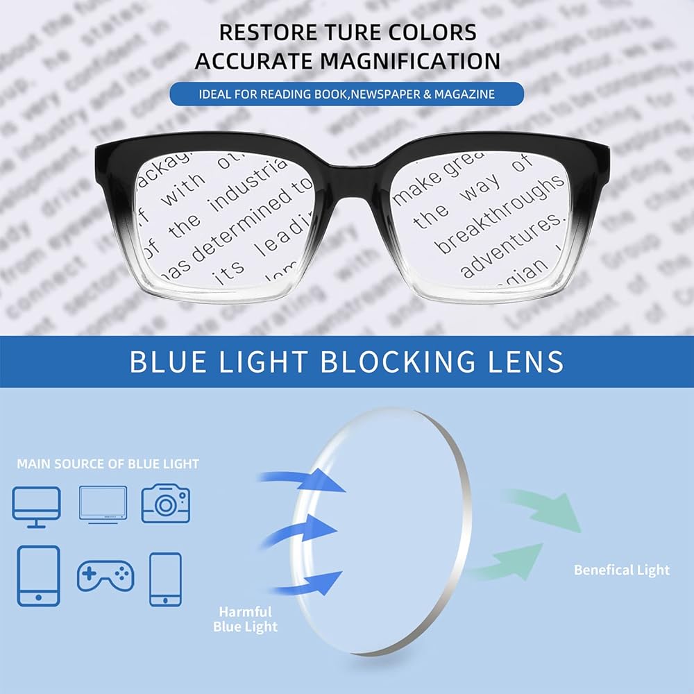 Blue Light Reading Glasses - Reduce eye strain and headaches by blocking harmful blue light from electronics and natural sources, and beneficial blue light helps you sleep better.