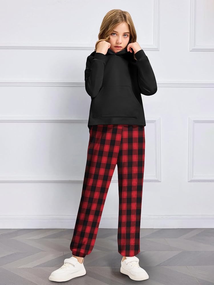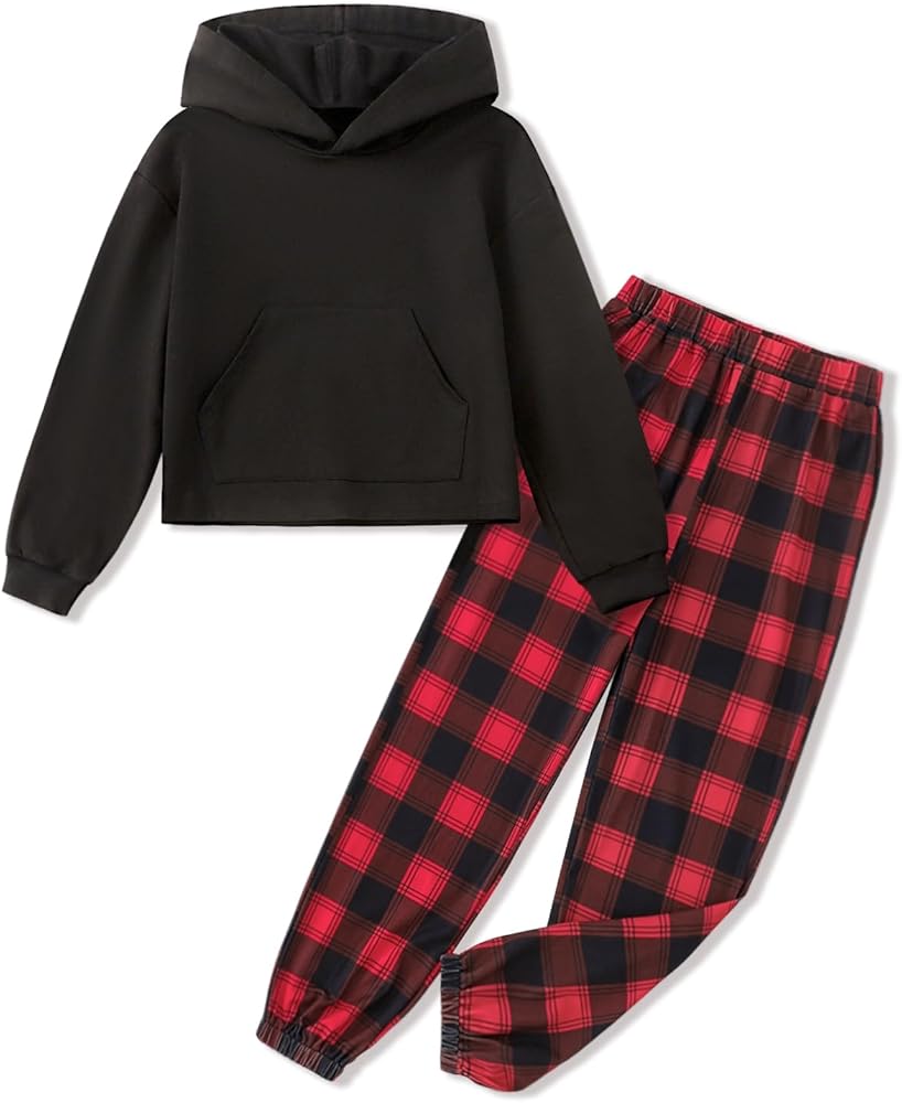 Features: Girls clothing sets includes hoodie and pants. Long sleeve drop shoulder hooded pullover sweatshirt, and matching camo baggy sweatpants girls/girls plaid pants, clothes for girls 10-12, which are also cute and leisurely