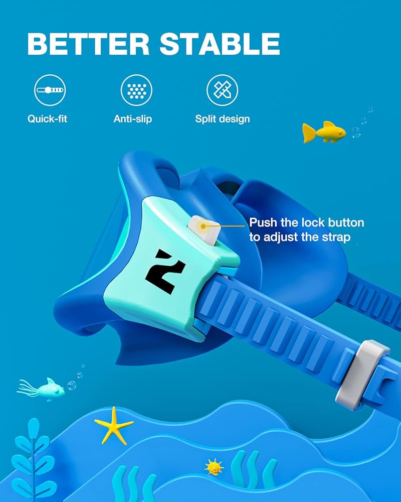 [Comfortable Wearing] - This kids swimming goggles come with soft and flexible silicone gasket, adjustable split head strap, TPR ergonomic nose bridge, provides excellent suction and ensure non-slip coverage, that is designed to fit a wider range of face shapes for both boys and girls