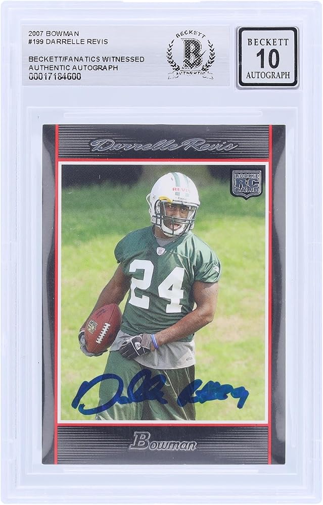 Darrelle Revis New York Jets Autographed 2007 Bowman #199 Beckett Fanatics Witnessed Authenticated 10 Rookie Card . If a product is unsigned or non game-used, a hologram will not be included. Darrelle Revis memorabilia. New York Jets memorabilia.