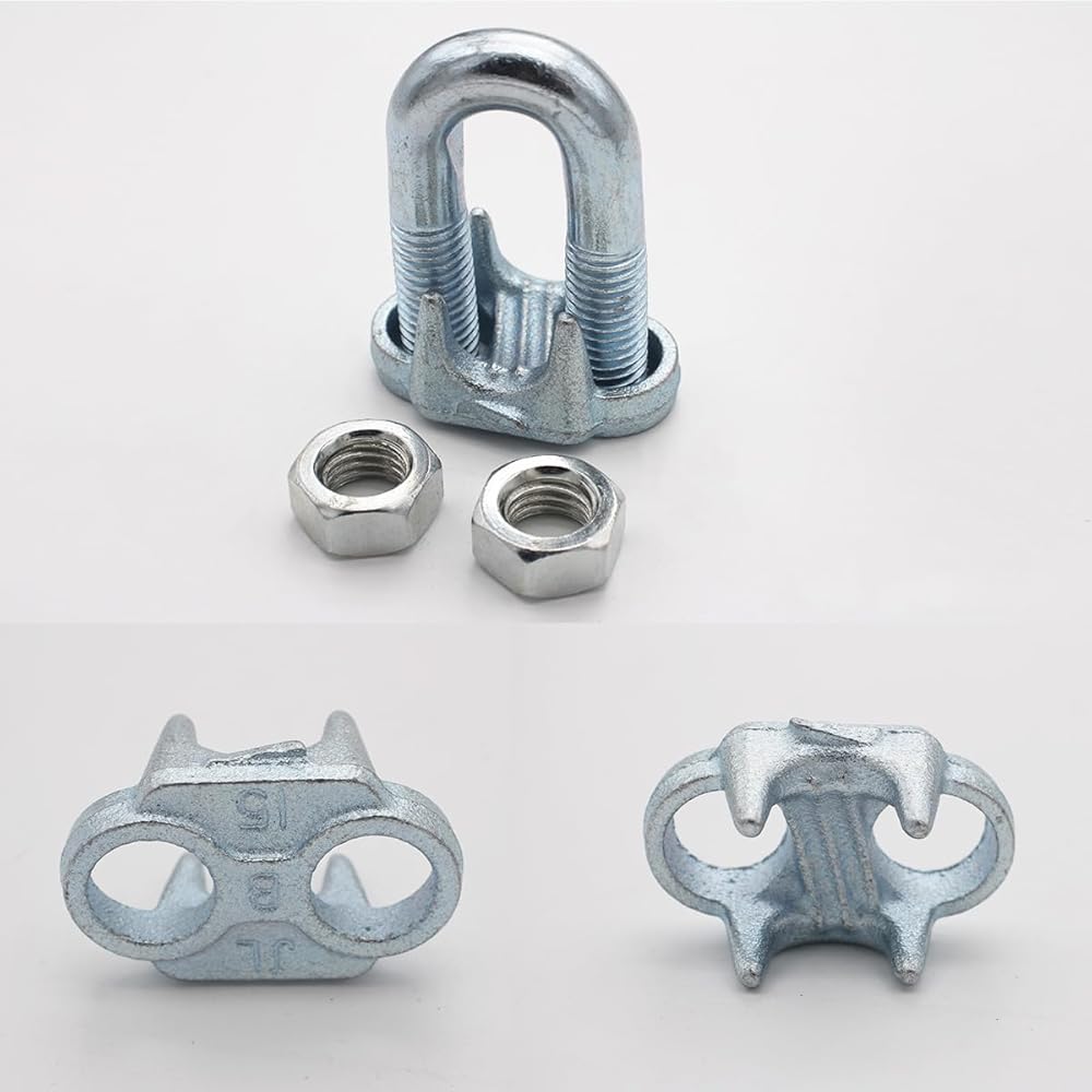 • ANTI-SLIP GROOVE: The wire rope cable clip clamp adopts a special U-shaped design, and the inner wall groove has an anti-skid texture, which effectively increases friction and prevents the wire rope from slipping