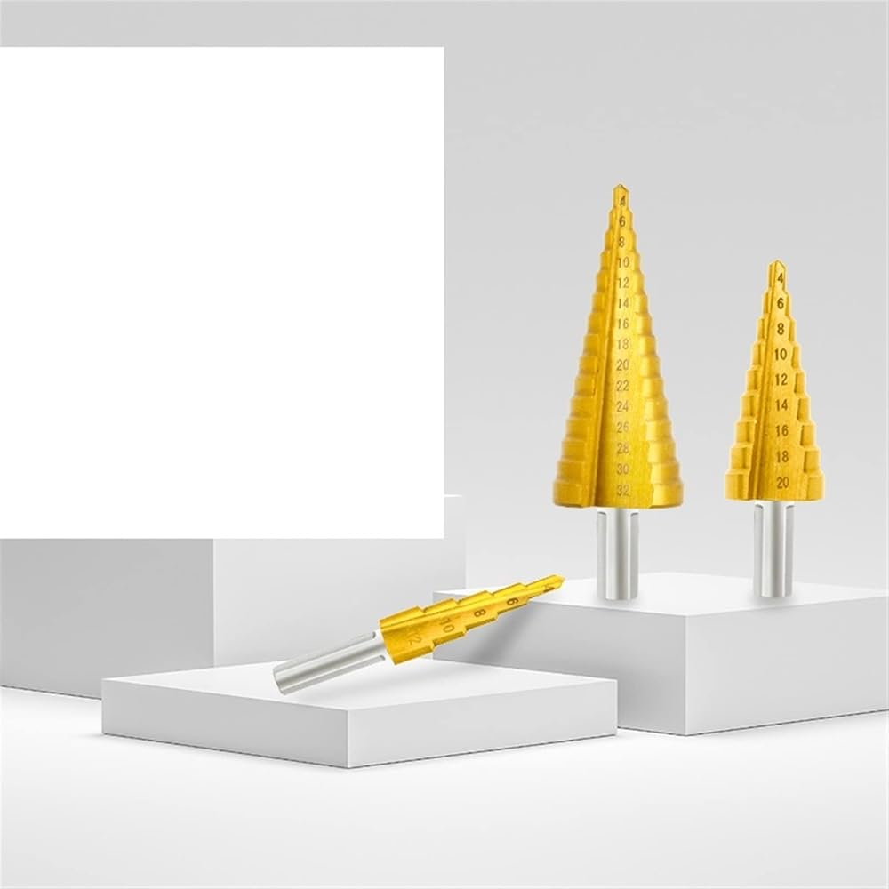 Step Cone Drill Bit Set 4-12/4-20/4-32mm Coated Wood Metal Drilling Tool Hole Core Drill Bit 1Set(3pcs Drill Set)