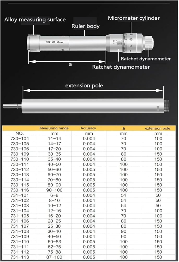 Three-Claw Inner Diameter Micrometer Three-Point Internal Measurement Inner Diameter Micrometer Aperture 0.005mm(5-30mm)