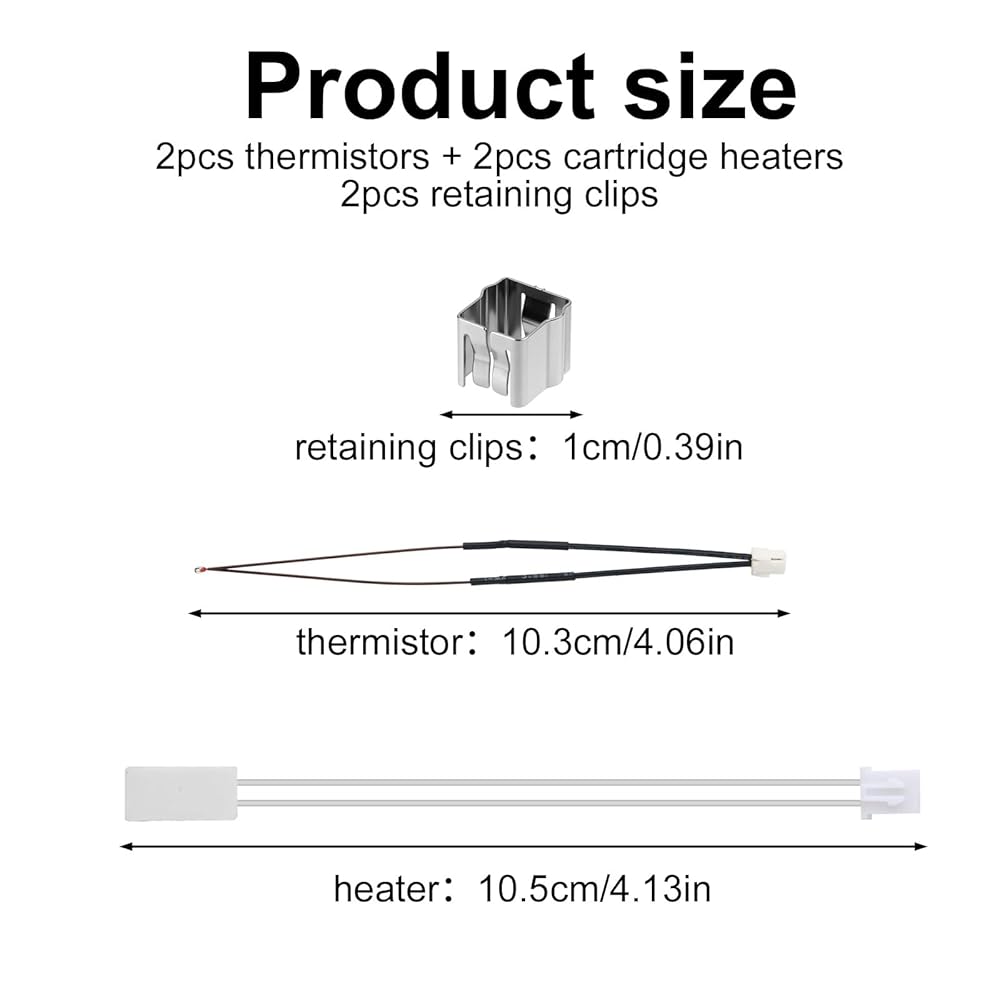Package Content: You will get 2 pieces of thermistors, 2 pieces of cartridge heaters and 2 retaining clips, suitable for Bambu Lab X1/X1C 3d printers. Please note that our product isn't sponsored or endorsed by the brand it fits, including Bambu Lab.