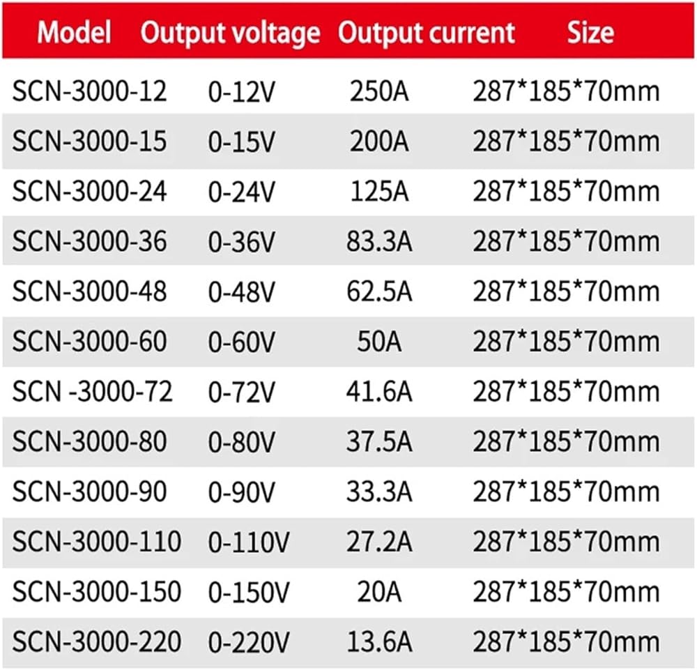 SCN-3000 Switching Power Supply 3000W Adjustable Voltage Current AC/DC 15V/24V/36V/48V/72V/110V/220V 220VAC SMPS for Motor(0-110V 27.2A-3000W)