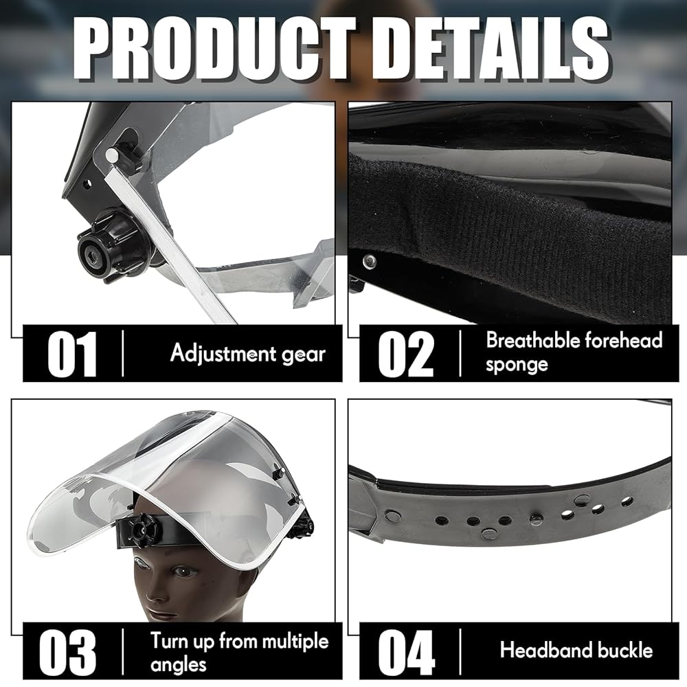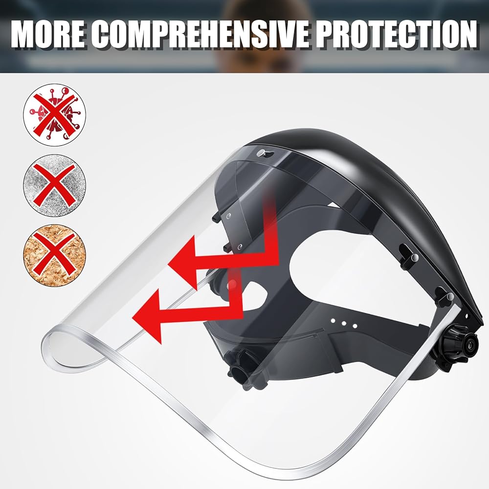 Safe and Adjustable Design: the grinding face mask shield offers the advantage of adjusted fitting; Use the ratchet knob on the side of the shield to adjust the headband until it's snug and comfortable; Thanks to the design, your shield will stay in place