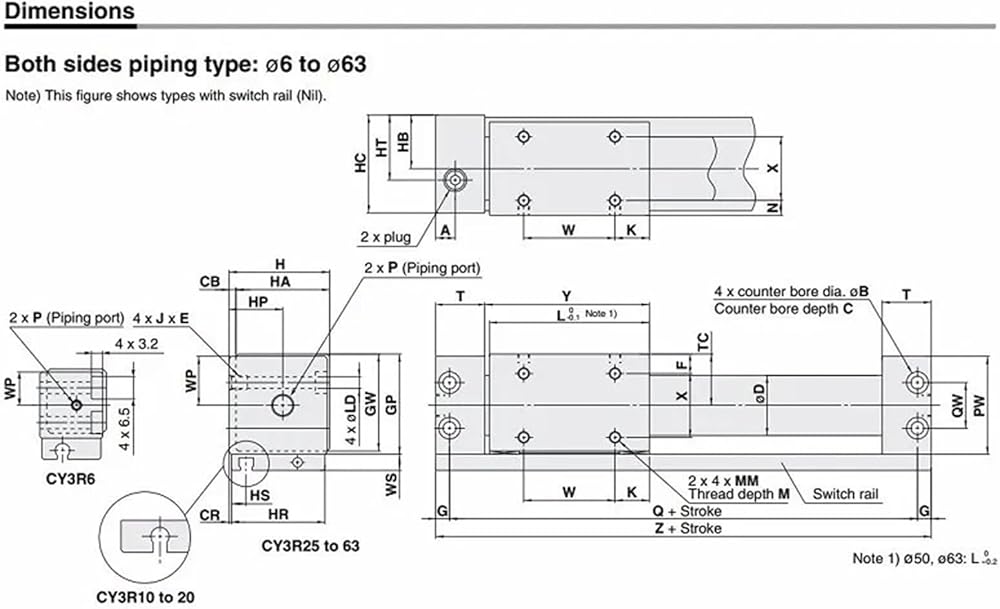CY1R40-100 200 300 400 500 Pneumatic Parts Double Rodless Magnetically Cylinder with Guide(CY1R40-100)