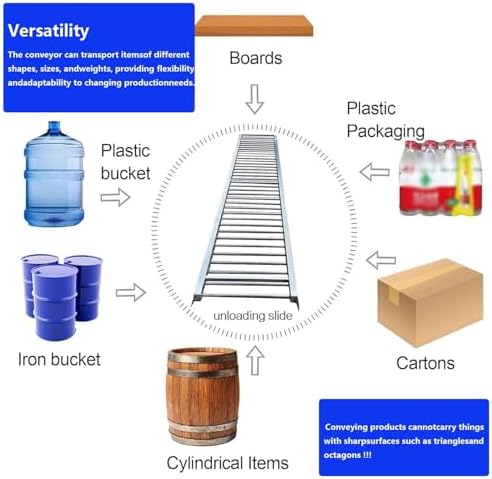 Roller Conveyor Skate Wheel Flow Rail Portable Light-Duty Gravity Conveyor Unpowered Table roller gravity conveyor,Upgrade your material handling efficiency with our customizable conveyor rollers, designed to meet diverse project and building requirements. Made from high-quality 201 stainless steel, these replacement conveyor belt rollers are water and rust resistant, ensuring durability in various operating environments. Our rollers are engineered to withstand wear and impact without deformation or cracking, making them ideal for use in assembly lines, warehouses, and manufacturing facilities. The smooth and flat surface of the rollers guarantees steady, reliable motion and quiet operation, which is essential for maintaining a productive work environment. Whether you're enhancing an existing conveyor system or embarking on a DIY project, our heavy-duty stainless steel conveyor rollers offer effortless motion and increased efficiency. With options available in various widths (30cm, 35cm, 40cm, 50cm, and 60cm) and customizable lengths (1-10m, with splicing for lengths over 150cm), you can tailor the setup to fit your specific needs. Designed with practicality in mind, our rollers are equipped to handle flat items such as cartons, plastic boxes, and foam boxes, making them a versatile choice for your material handling tasks. The galvanized thickened square tube frame ensures stability and strength during operation. Included in your package is one unpowered roller conveyor slide along with installation parts. Please carefully confirm the required dimensions, including roller size, frame width, and roller centers, before placing your order. If you encounter any issues with receiving, installing, or using the product, our professional support team is always ready to assist you. Experience the benefits of improved efficiency and reliability with our stainless steel conveyor rollers today!