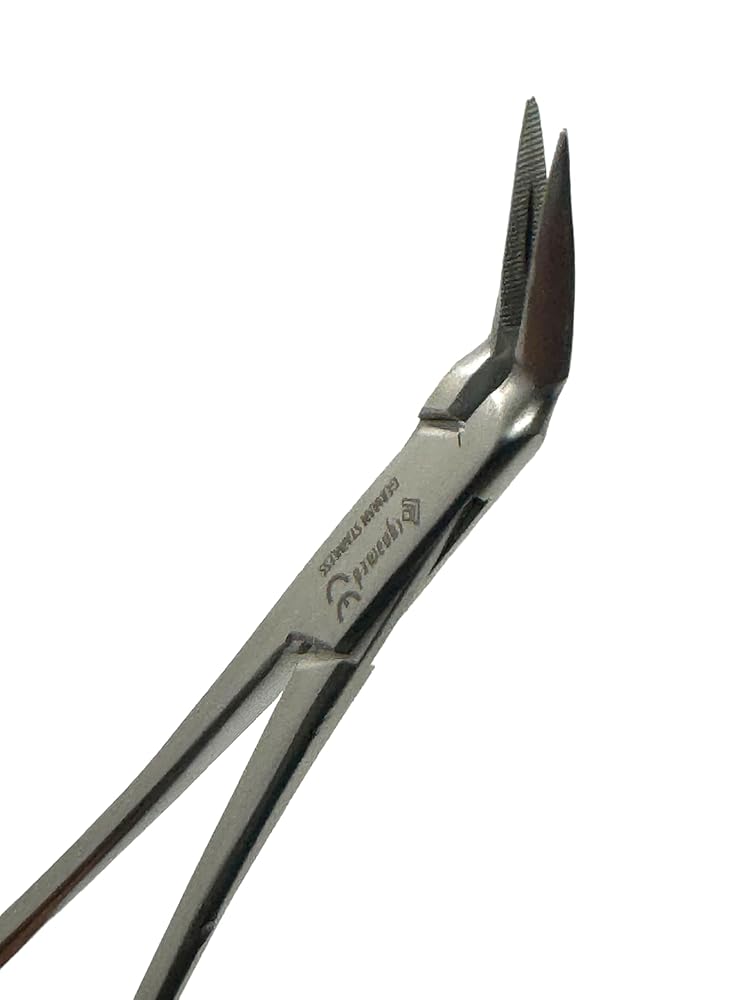 Includes: 1 - 5.5" (13.97cm) Stieglitz Splinter Forceps with 90 Degree Angled Tips, Serrated, Fine, & Ratchet Locking Mechanism. Stieglitz splinter forceps with a 90-degree angled tip is a medical instrument designed to grasp and remove splinters or other foreign objects from wounds. Material: Made from German stainless steel for durability and resistance to corrosion. Angled tips: 90-degree angled tips allow for easier access to hard-to-reach areas. Serrated tips: Serrated tips provide a secure grip to grasp objects firmly without slipping.