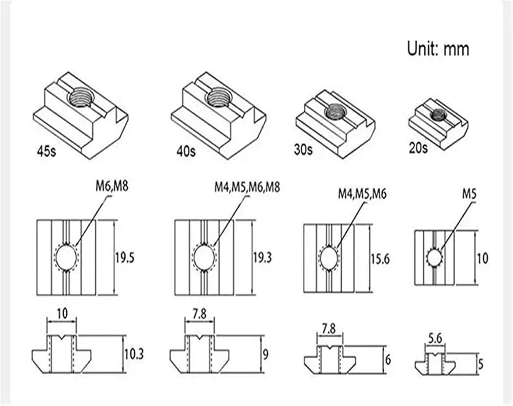 50pcs T Slide Hammer Nut Block Square Nut M3 M4 M5 M6 M8