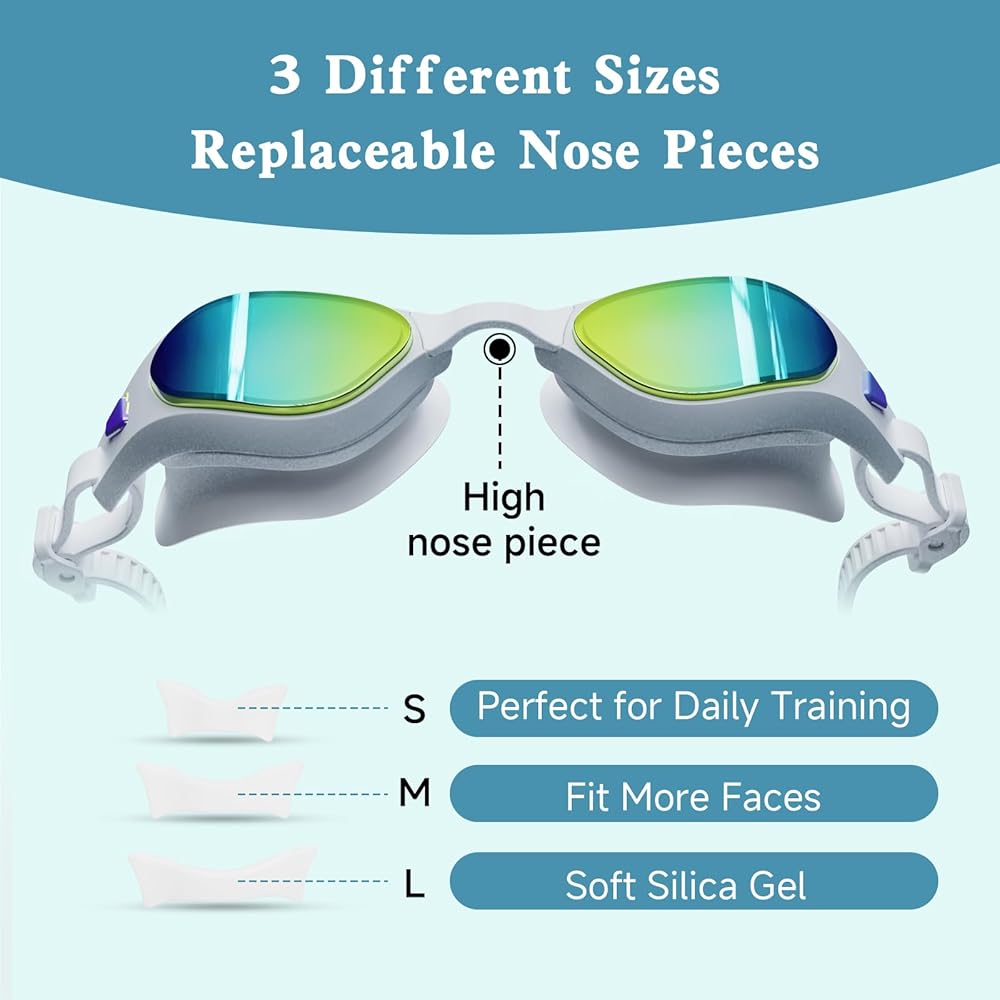 Anti-Fog & UV Protection: Our swimming goggles use ultra-clear PC lenses and the latest anti-fog treatment,goggles swimming adult offer a crystal-clear underwater view, enhancing your swim.Equipped with a UV coating, these prescription goggles shield your eyes from harmful UVA and UVB rays, ideal for outdoor water activities.