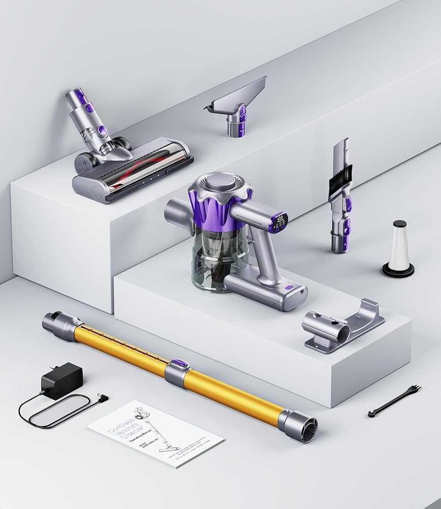 𝐔𝐋𝐓𝐑𝐀 𝐂𝐋𝐄𝐀𝐑 𝐋𝐄𝐃 𝐂𝐎𝐋𝐎𝐑 𝐒𝐂𝐑𝐄𝐄𝐍:Keep track of your stick vacuum cordless rechargeable's status in real-time with our LED color screen, including battery level, suction mode, and malfunction reminder and get timely maintenance and cleaning reminders. Maximize the lifespan of your rechargeable vacuum cleaner with this innovative feature.