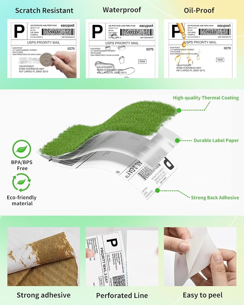 Commercial Grade Stickers: Phomemo label stickers have a hydrophobic oil layer to protect against water and oil, keeping your shipping labels clear and legible. Ensure the security of your personalized sticker labels
