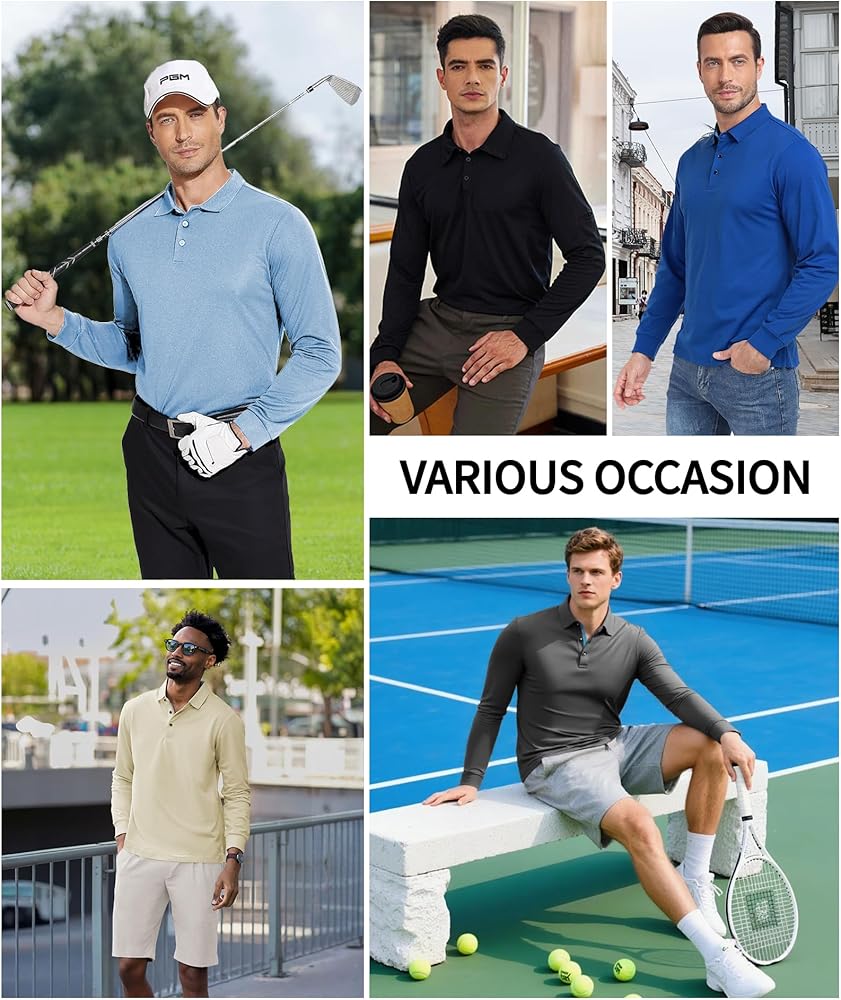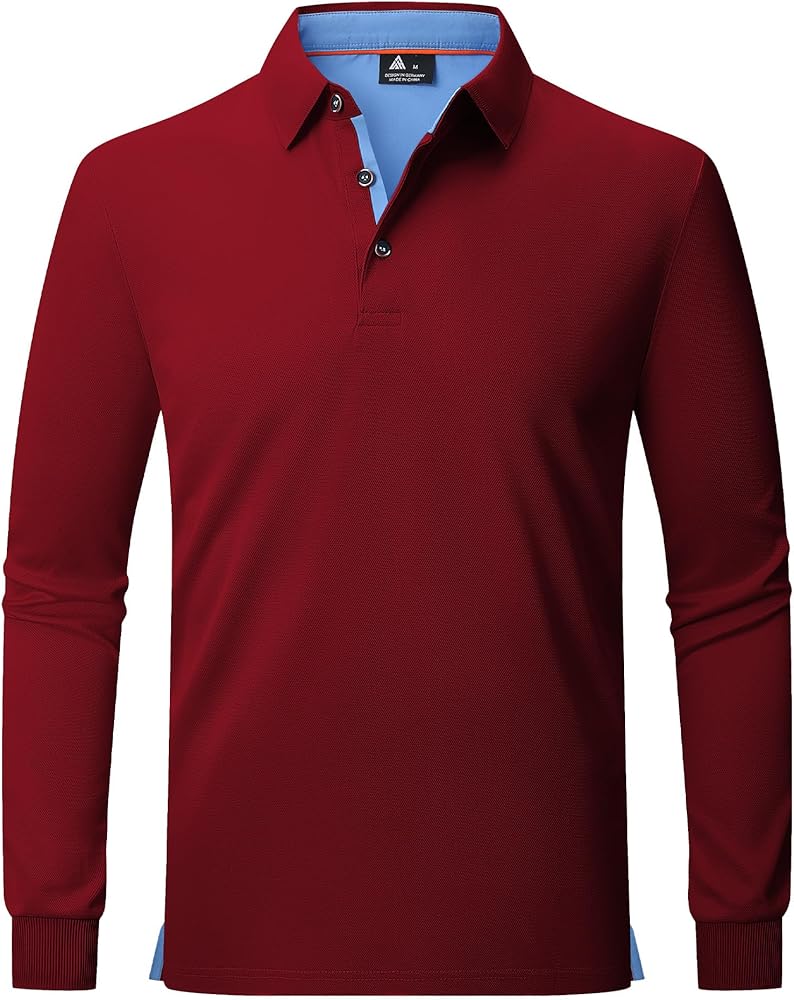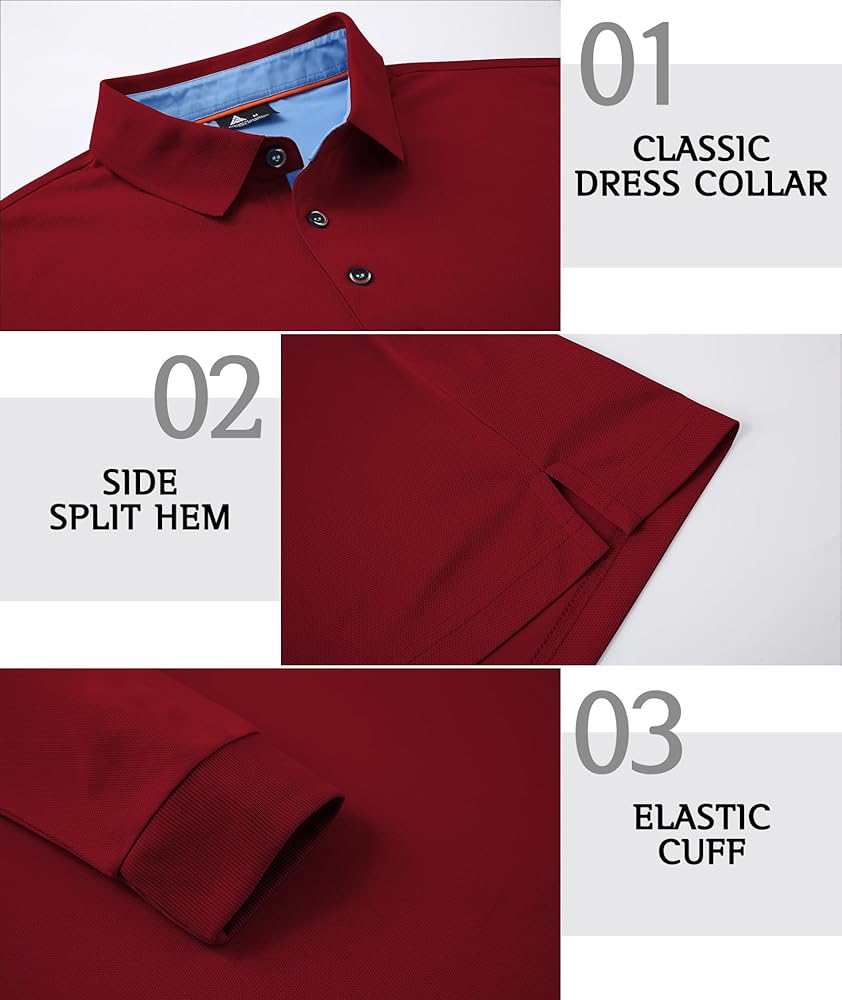 【Lightweight & Breathable】Our mens long sleeve polo shirts are made of polyester and elastane, lightweight, comfortable, and very soft. Suitable for wearing all year round, it can stay cool and dry all day in spring, summer, and autumn, and is suitable for layering in winter