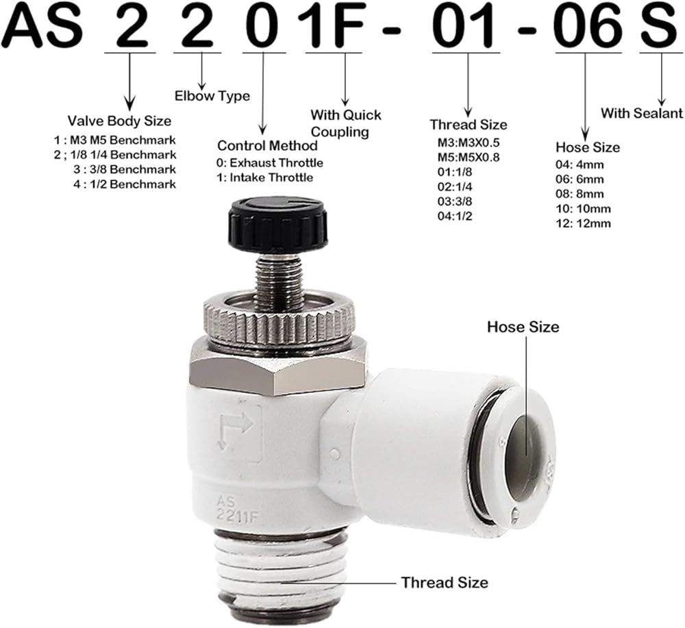 6 PCSC cylinder throttle speed regulating valve pneumatic joint exhaust throttle valve AS1201F/2201F/3201F-M5/01/02-04A/06A(01-04S)