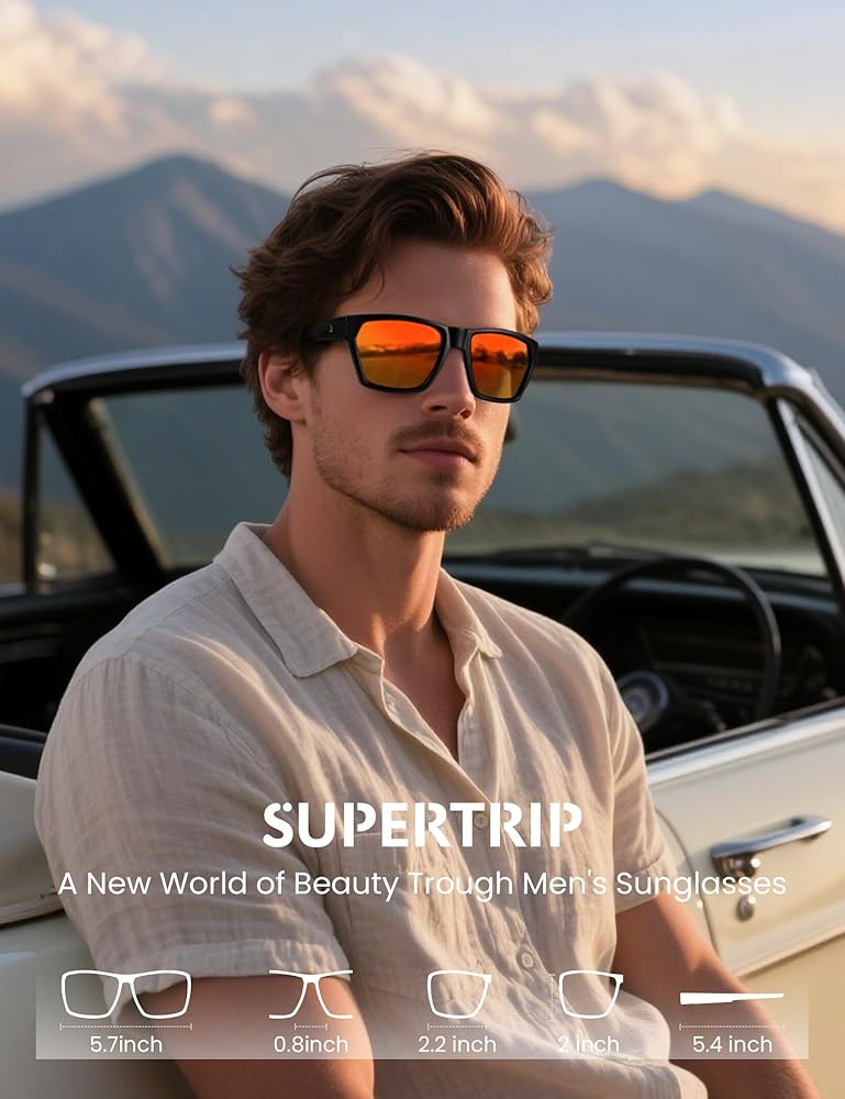 【UV Protection & Polarized TAC Lens】: Our men's sunglasses feature TAC lenses with UV400 protection that block 99.9% of UVA/UVB/UVC rays. The HD polarized mens sunglasses lenses reduce glare and reflections and provide unparalleled clarity, revealing vibrant colors and enhancing your visual experience for any outdoor activity or daily urban adventure.