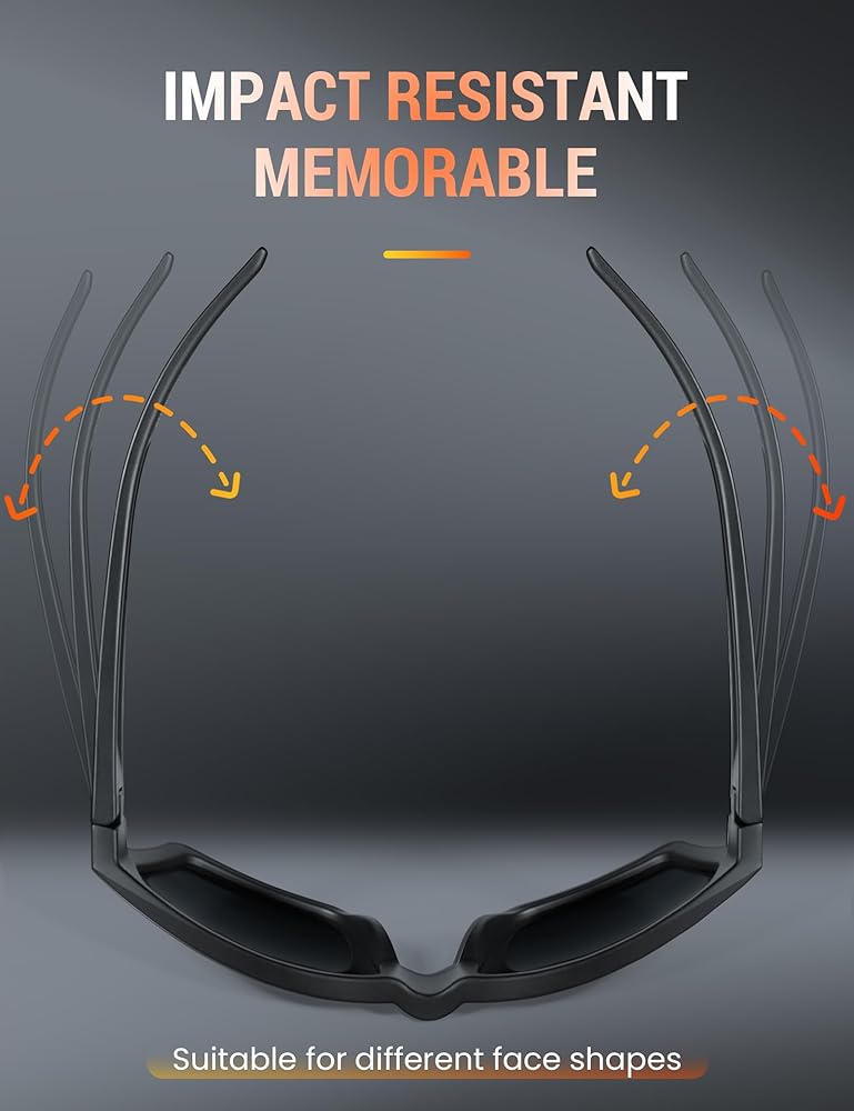【Ultra-lightweight & Floating】: Crafted from premium TR90 material, ultra-lightweight(only 21 grams),allow these sport sunglasses float on water, won't sink if dropped during water activities.Super lightweight makes you very comfortable when long time wearing, won't compress your nose. Unique Flex Hinges Design,Don't Press Head,and suitable for most face shapes. Ideal for all your water sports adventures and outdoor activities.