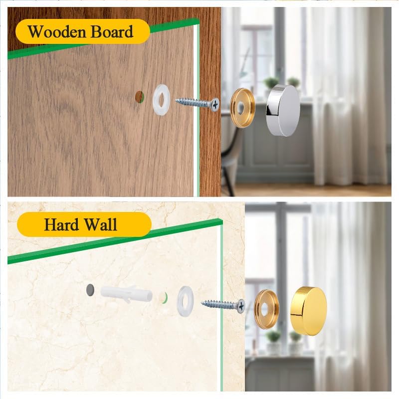 - The caps of mirror nails perfectly cover the exposed screws, which make the screws look beautiful.