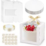 MUMULULU 15 PCS 6 x 6 x 6 Inches Cake Boxes with Carry Handles and Cake Boards White Bakery Boxes with Silk Ribbon and Stickers for Cakes Pastries Birthday Party Wedding