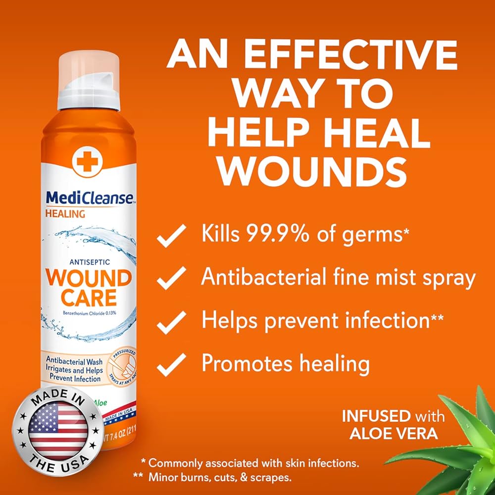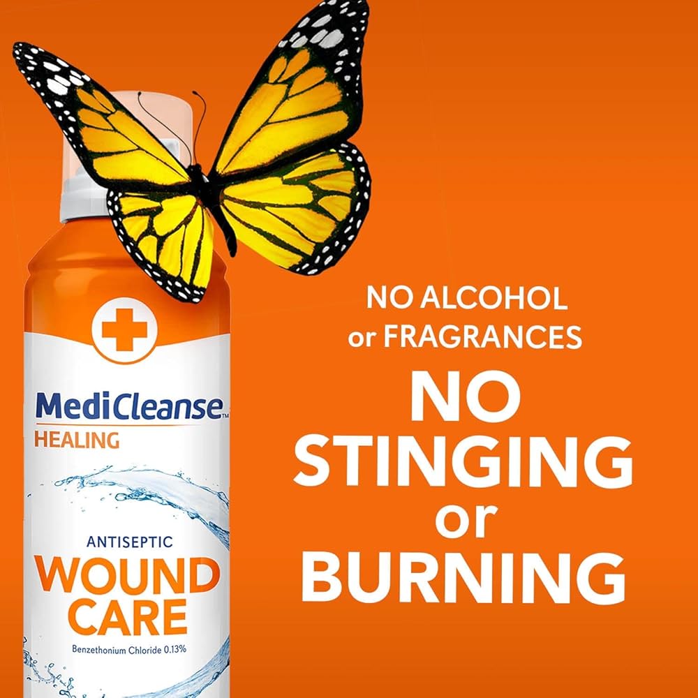 MediCleanse Sterile Saline Wound Wash: Provides a safe, gentle, and effective way to cleanse minor wounds, scrapes, burns, as well as piercings without stinging or burning