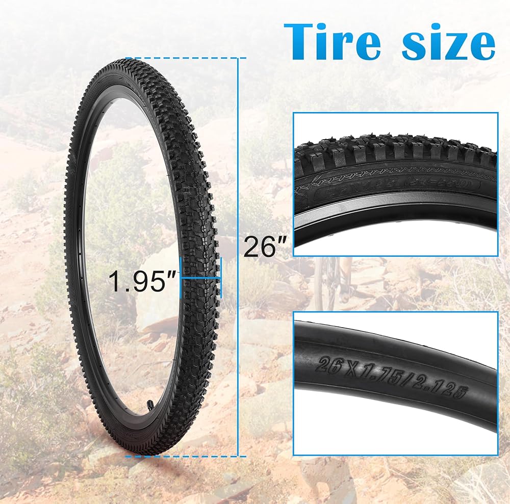 Complete Kit for Hassle-Free Maintenance-This value-packed set includes 1x 24x1.95" tires, 1x 24x1.95 inner tubes, 2x tire levers, 1x valve core tool,1x aluminum alloy valve caps,3x valve cores, 1x nylon-fiber rim strip.The pre-folded tires simplify storage, and the included tools enable quick installation or on-the-go fixes, catering to riders of all skill levels