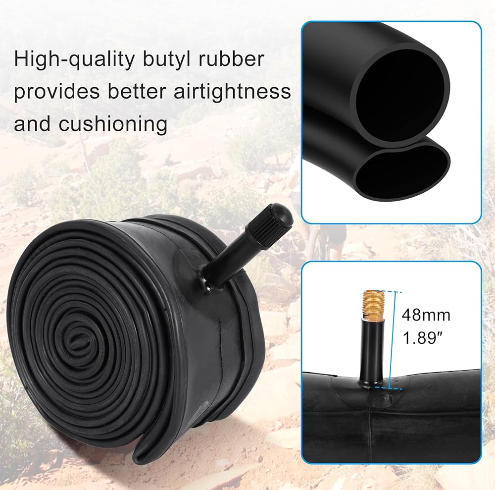 Premium Durability & Puncture Resistance-Crafted from high-density rubber reinforced with nylon cord technology, these 24x1.95" tires deliver exceptional puncture resistance and long-lasting wear.They withstand rugged terrains like mountain trails, forest paths, and urban roads. The inner tubes, made of thick butyl rubber, minimize vibrations and dissipate impacts