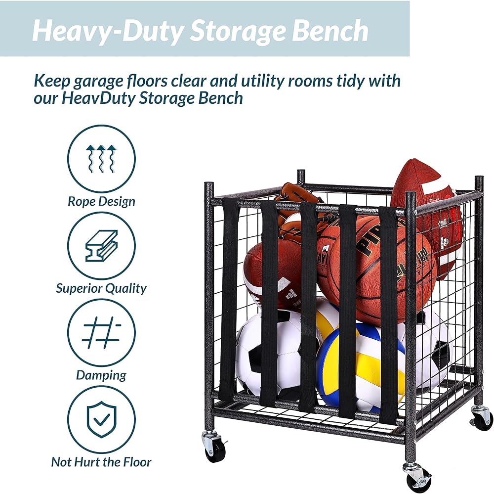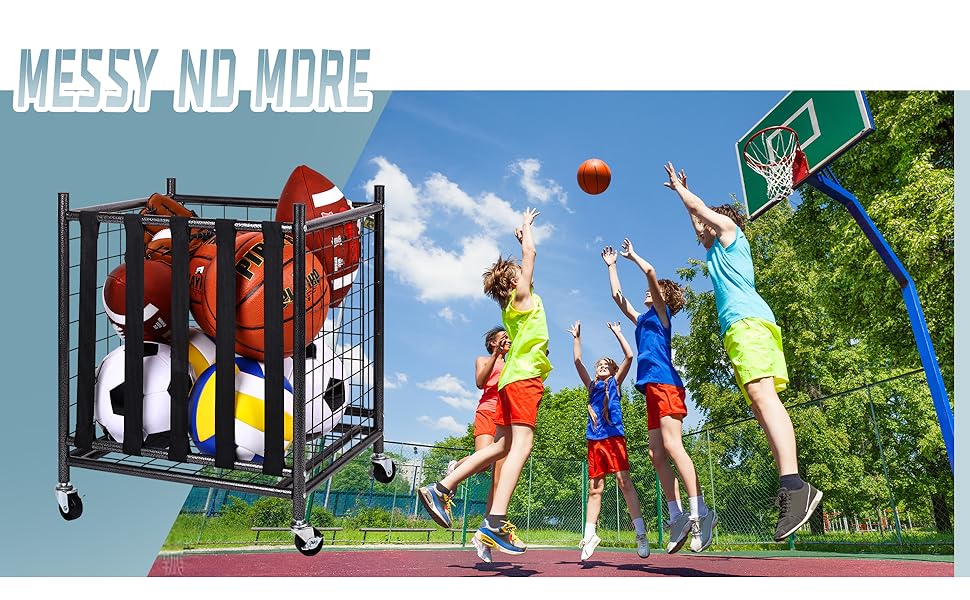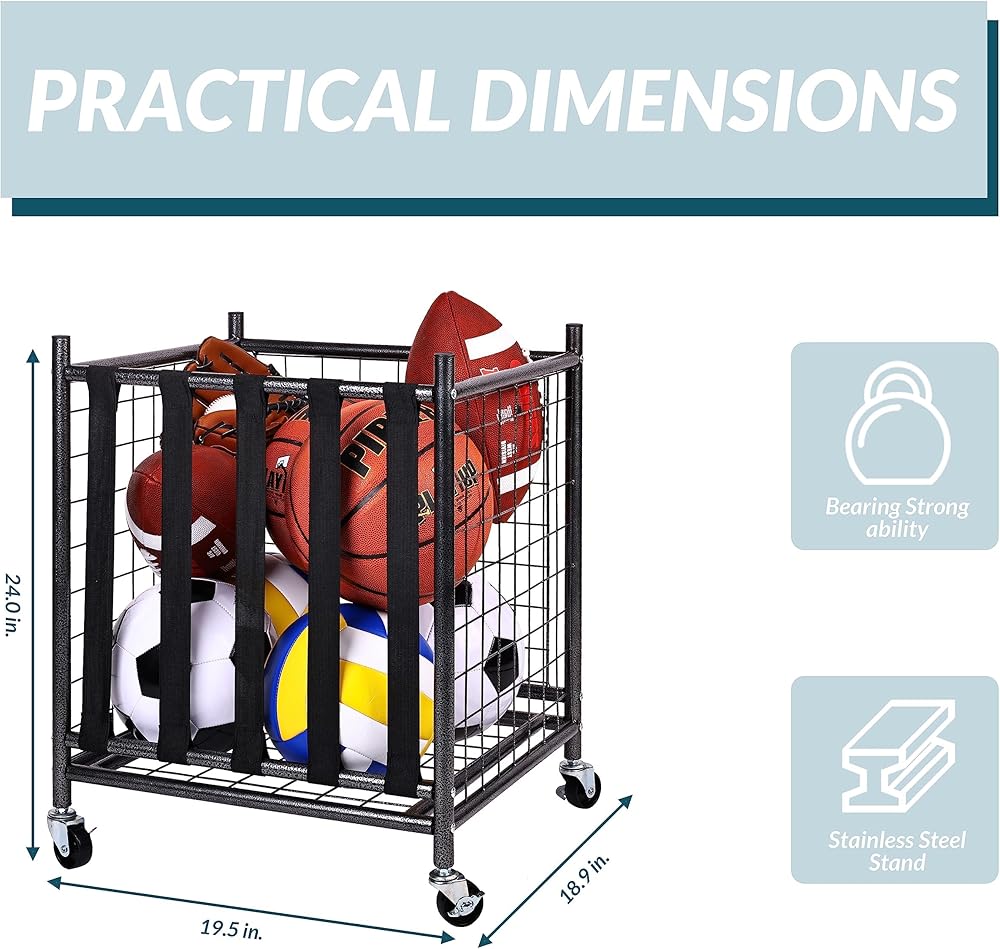 SMOOTH ROLLING BALL RACK - Features in 4 heavy-duty wheels, indoor & outdoor design, which is easy to move the cage anywhere and fits in a specific position. Great for basketballs, volleyballs, soccer balls and footballs.