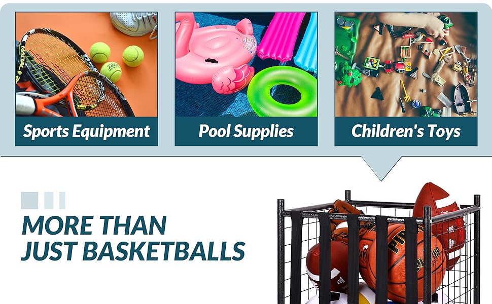AMPLE STORAGE CAPACITY - This storage almost holds all your sports stuff: different sorts of balls, yoga mat, knee pad, stretch strap and more.