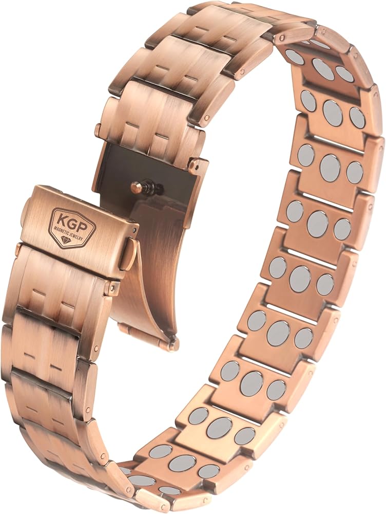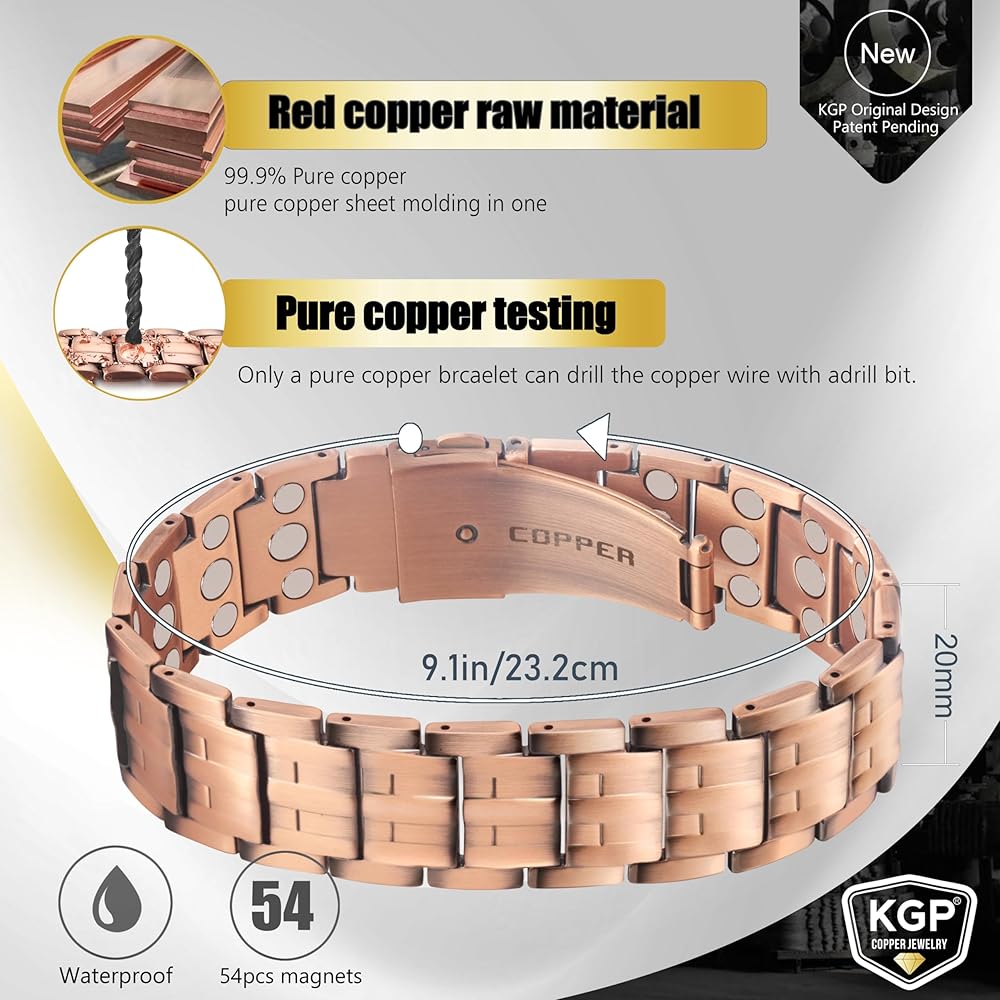 KGP® 3X Magnetic Copper Bracelet with Strength Magnets for Men,Mens Adjustable 99.99% Pure Copper Magnetic Therapy Bracelet with Premium Fold-Over Clasp and Gift Box