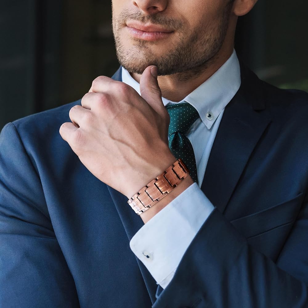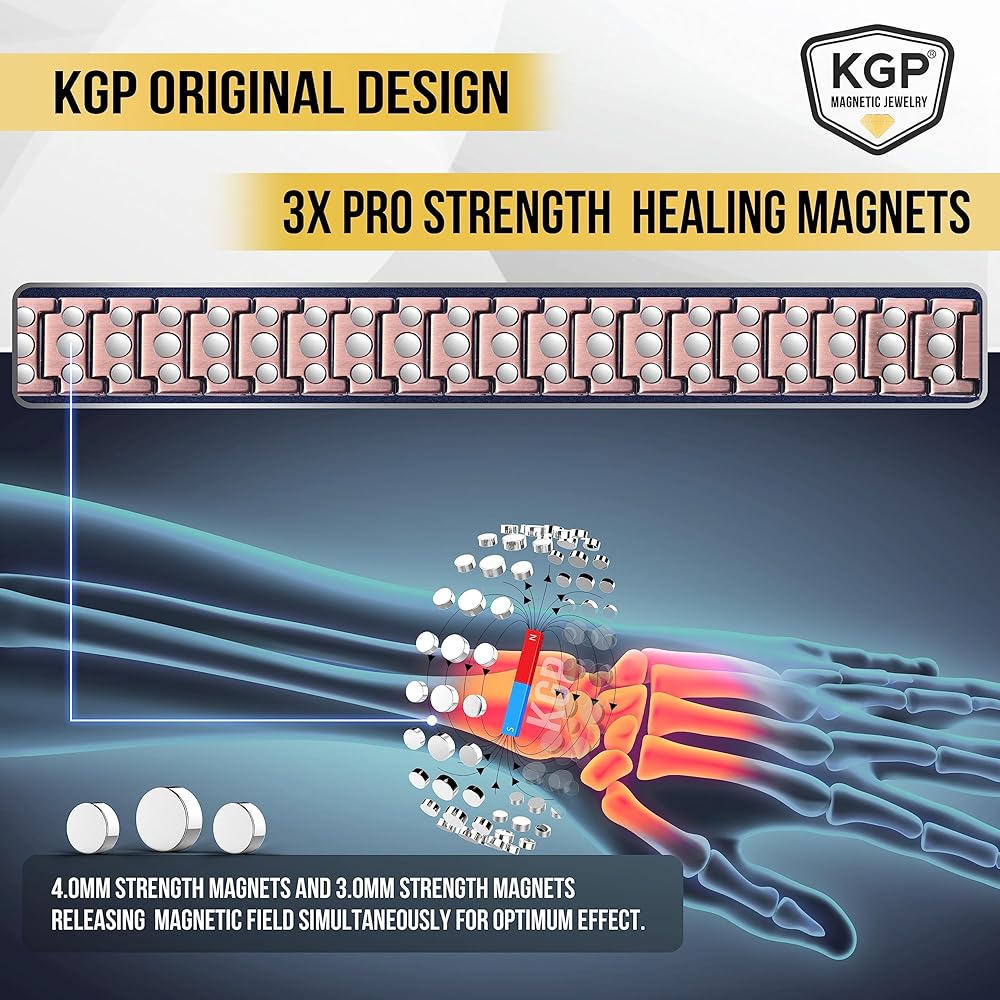 ✔️ TRIPLE STRENGTH RELIEF – The most advanced magnetic copper bracelet for men on the market featuring upgrade extra-large three powerful neodymium healing magnets per link (3,500 gauss each) - 63 magnets in total! It's help promote blood circulation to improve the metabolism of substances in the body,fatigue/arthritis and joint pain relief,anxiety stress, balance sleep and other health benefits.