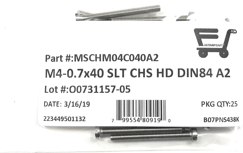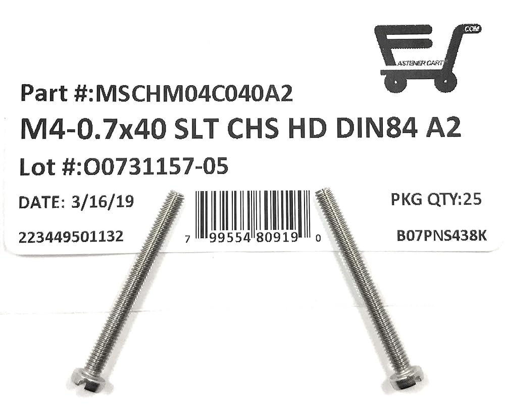 M4-.70 x 40 Stainless Steel Slotted Cheese Head Machine Screw DIN84 A2 M4x40 (25 Pieces)