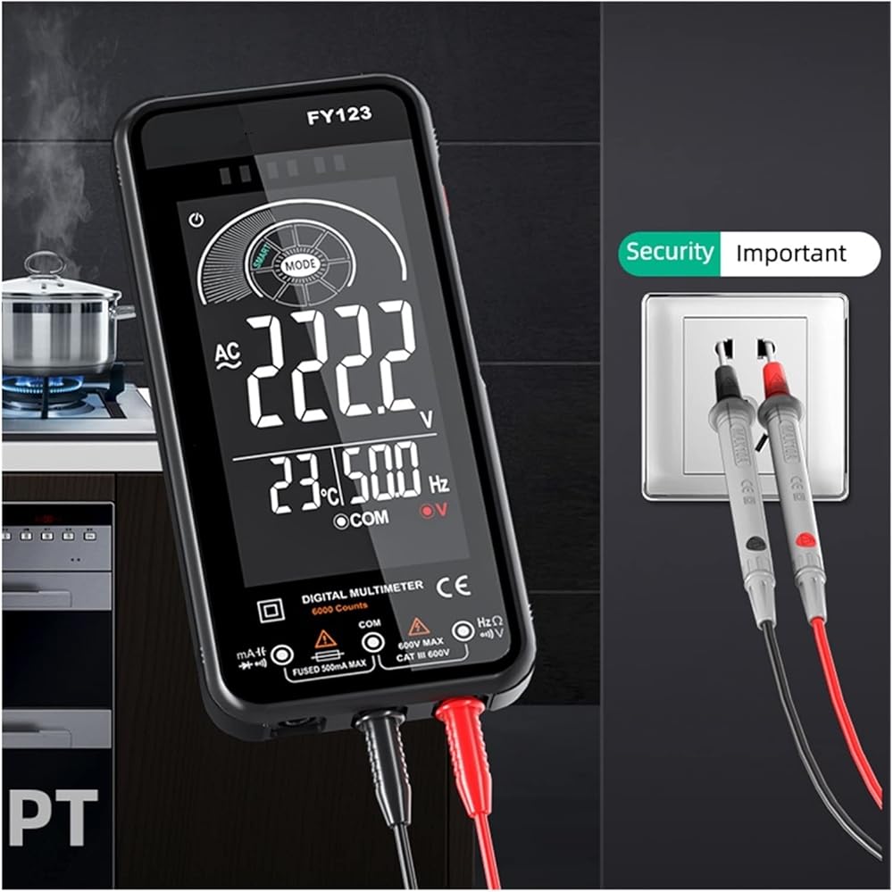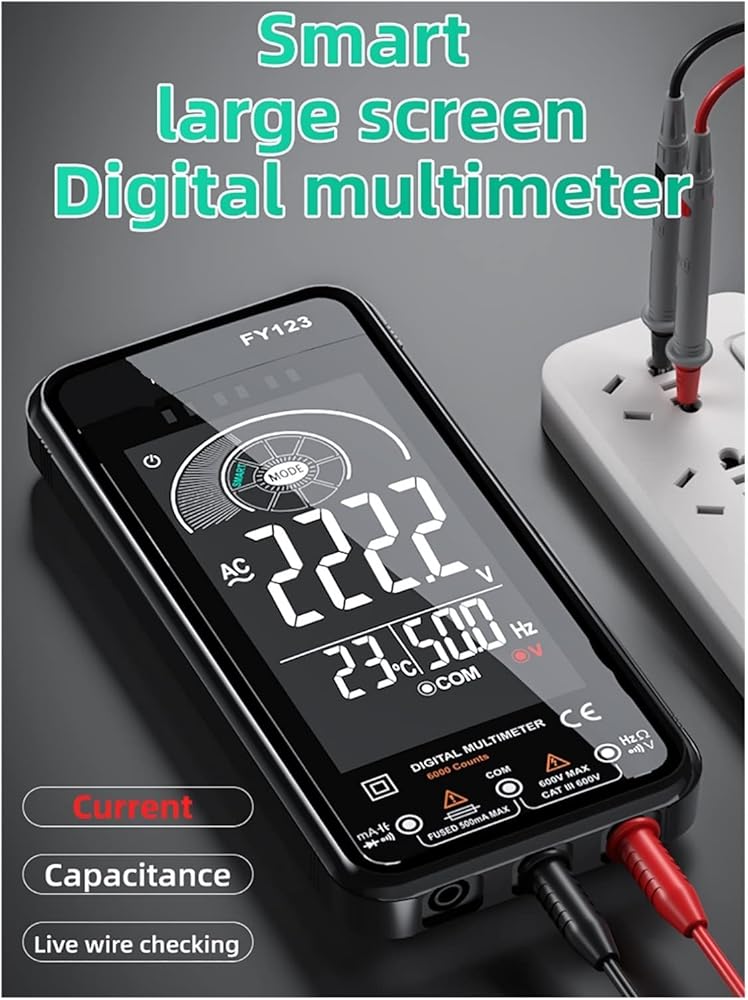 1. The signal generator is small in size, has many functions, easy to operate and easy to carry.2. The key layout is reasonable, all functions have independent corresponding keys, easy to operate.3. Built-in battery, low power consumption, long standby time.Features:1. Digital Multimeter: The digital multimeter can measure AC and DC voltage, AC and DC current, resistance, capacitance, frequency, continuity, ambient temperature, NCV, true RMS, live wire, diode.2. LCD Screen: LCD screen greatly enhance the reading experience. Backlight function make it very easy to read even in bright sunlight or poor light.3. Smart (AUTO) Measurement: In smart mode, it can automatically measure AC / DC voltage, resistance, short circuit and frequency.4. Flashlight Function: Flashlight design lets you test efficiently and comfortably anywhere, indoors and outdoors, day and night.5. Convenient & Easy The digital multimeter lets you test safely and efficiently light and compact, easy to carry.Specifications:Model: FY123Color: BlackShell Material: ABS 28 )Display: 6000 counts LCD displayOver Range Indication: LCD will display "OL"Maximum Allowable Voltage Between Measuring Terminal and Earth: 600V DC or 600V AC RMSBattery Low Voltage Indication: YESData Hold: YESFlashlight Function: YESOverload Protection: YESAuto Shutdown: No operation after 5 minutesInput Polarity Indication: Automatically display "-" signPower Supply: 3 x 1.5V AAA battery ( not included )Item Size: 16.2*8*2.4cm / 6.38*3.15*0.94in Net Weight: 218g / 7.69ozPacking Size: 20.5*13.5*4cm / 8.07*5.31*1.57in Packing Weight: 430g / 15.17ozPackage List:1 * Multimeter