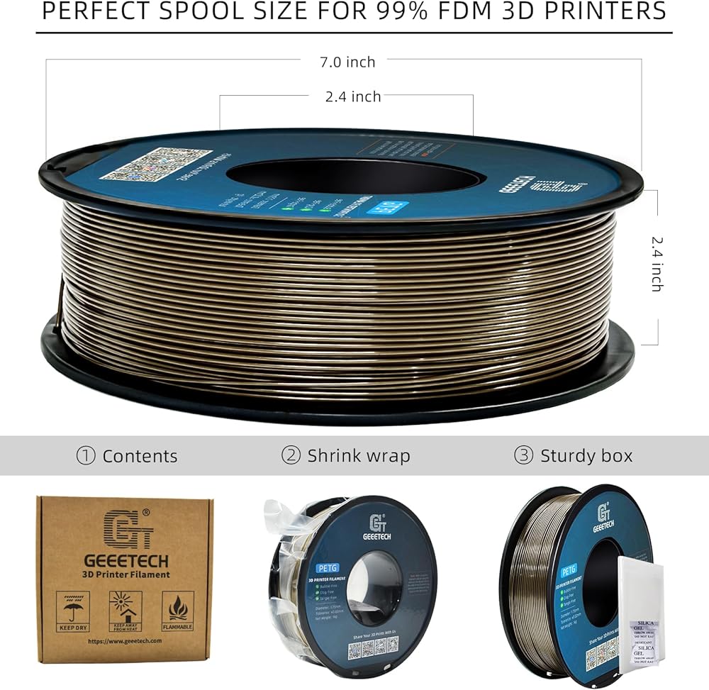 Pro Tip for Optimal Metallic Finish with PETG Metallic Filaments: To achieve the best metallic finish with our PETG Metallic series, use the filament within 1 week of opening or dry it at 176°F (80°C) for 4–6 hours before printing. For extended storage, re-dry as needed to maintain print quality.