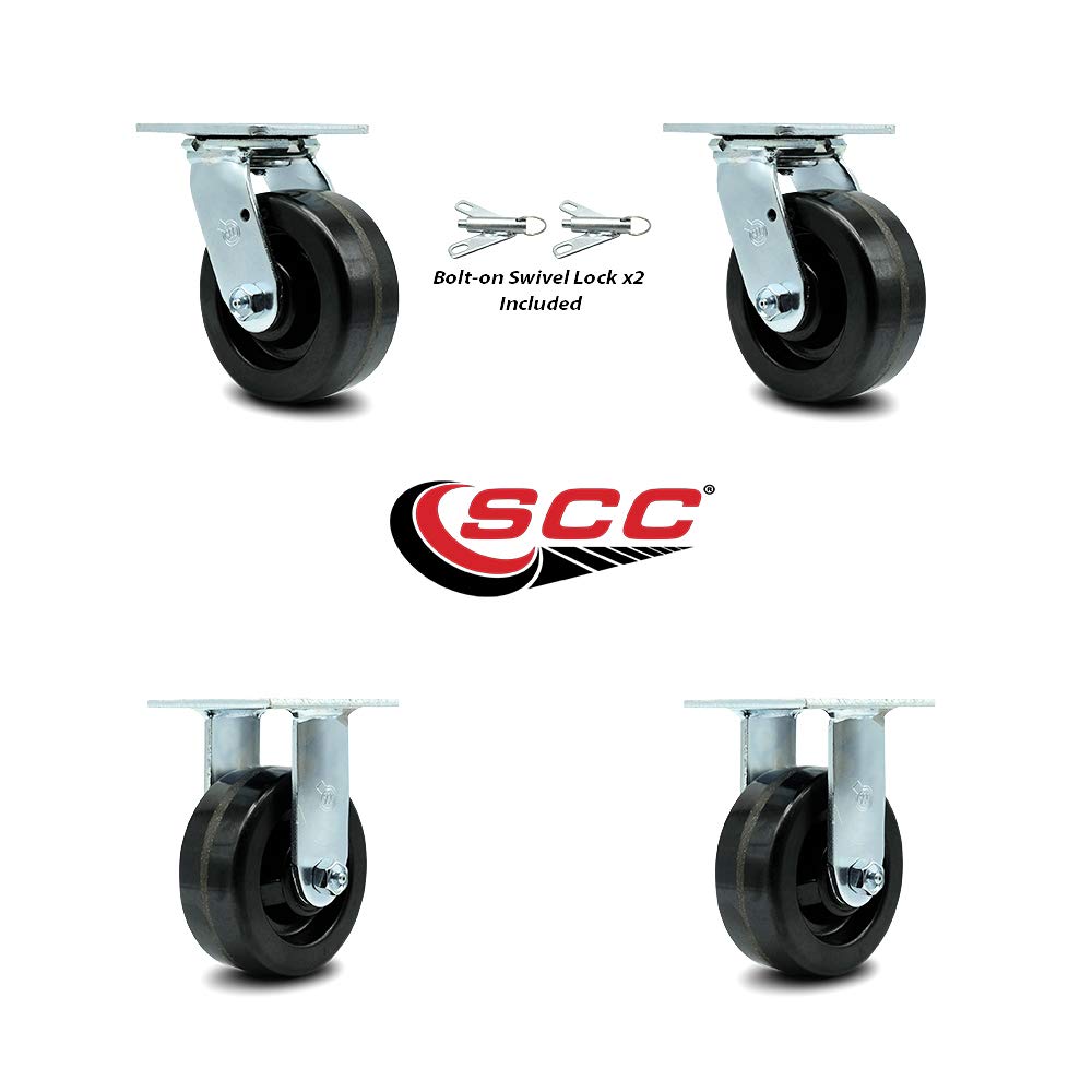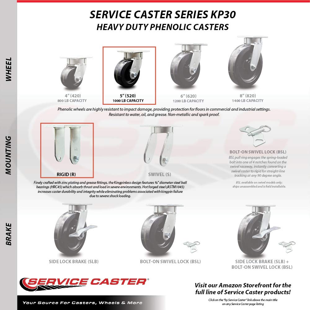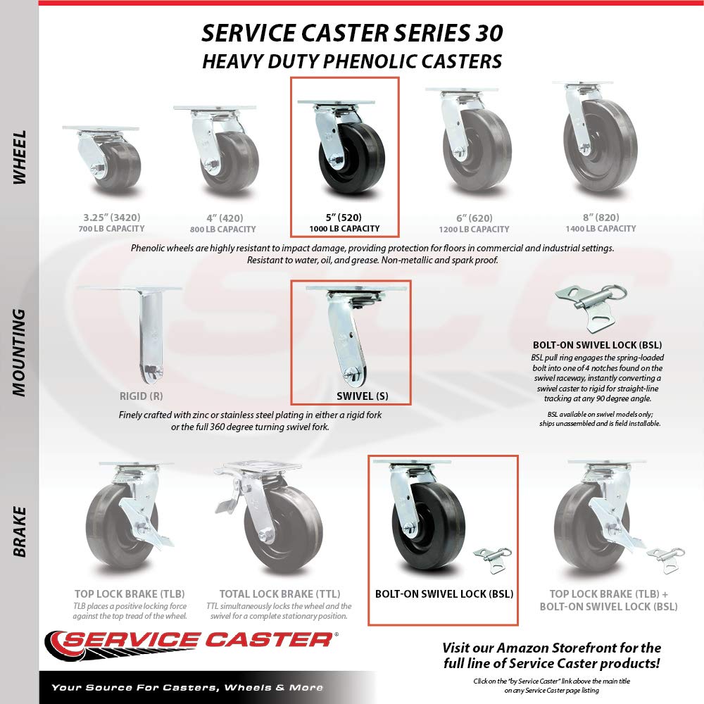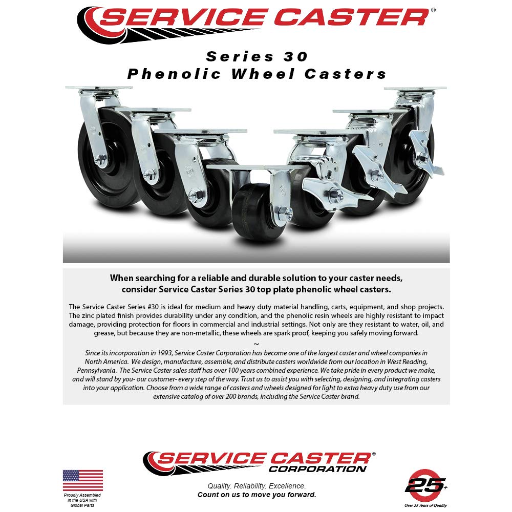 Phenolic Swivel Top Plate Casters Set of 4 Heavy Duty with 3.25 Inch Wheels - Includes 2 Swivel and 2 Rigid - 2,800 lbs. Total Capacity - Service Caster Brand